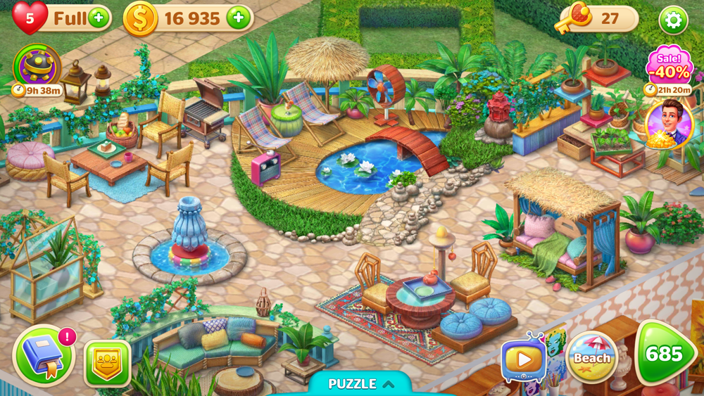In each level, there is a puzzle to solve by matching two or more identical elements. Solve the colorful puzzles to renovate and decorate the hotel by selecting your signature style for its interiors. Ever wanted to decorate your own mansion? Have a blast choosing from hundreds of customizable interior designs. Transform this mysterious place to your heart’s desire!