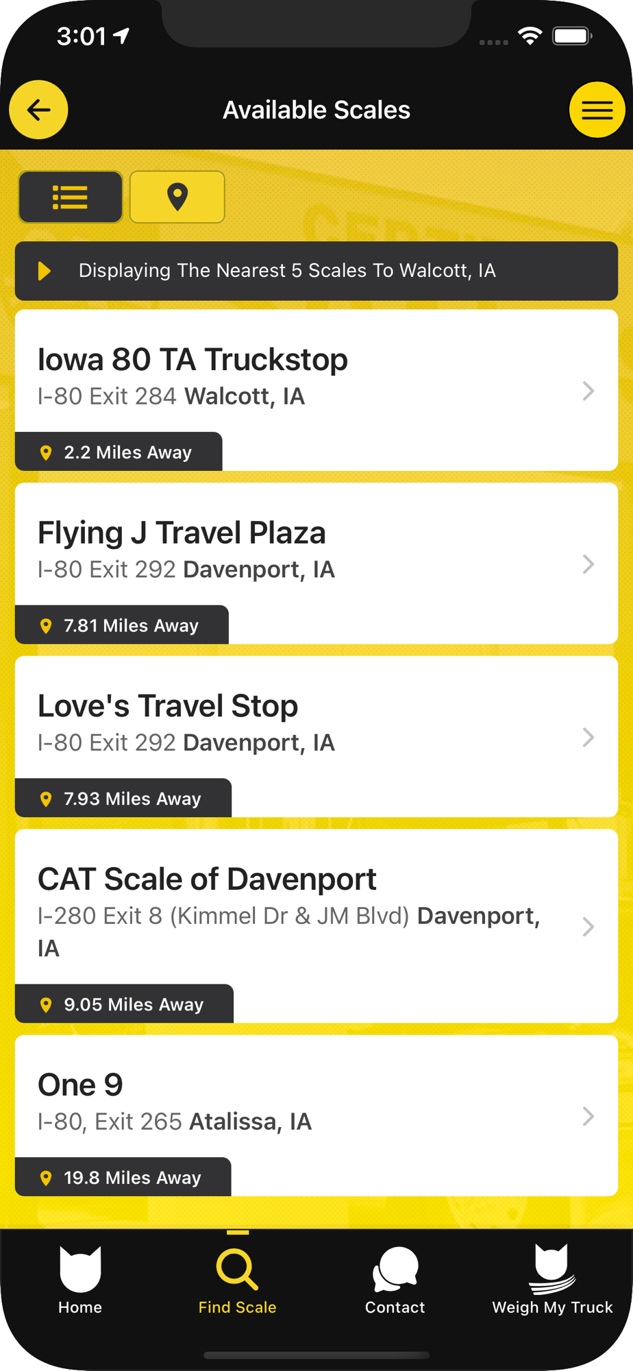 Now you can access CAT Scale locations from anywhere on your iOS device! Easily Locate and Save locations based on your current GPS location or custom search!