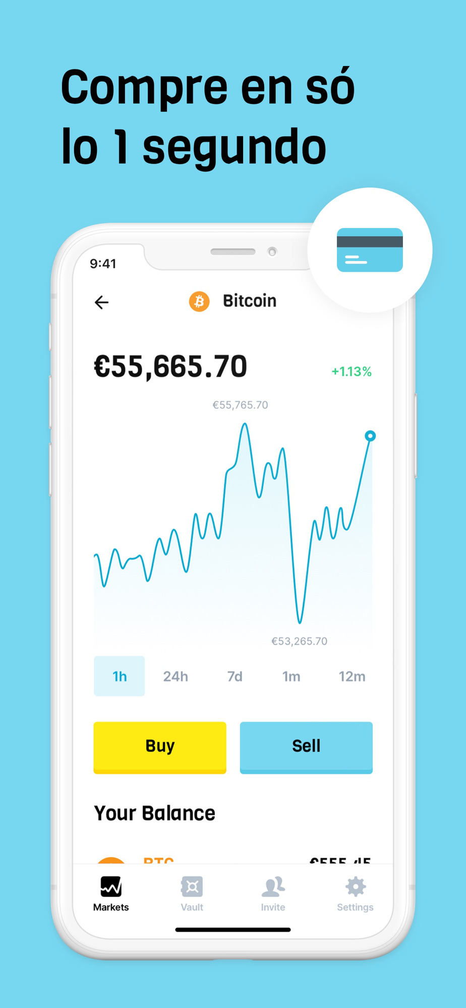- Rápido como un rayo. Compra y empieza a invertir en bitcoin en sólo cuatro segundos. Reacciona directamente al precio de crypto sin necesidad de una cartera (wallet).