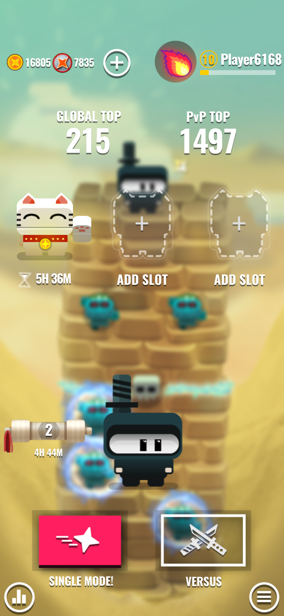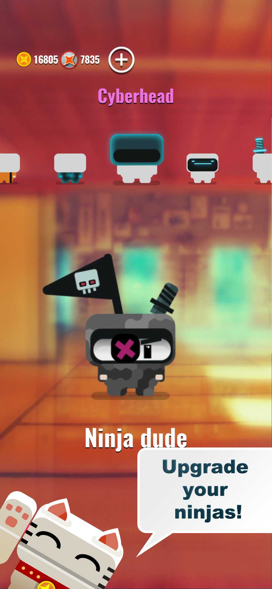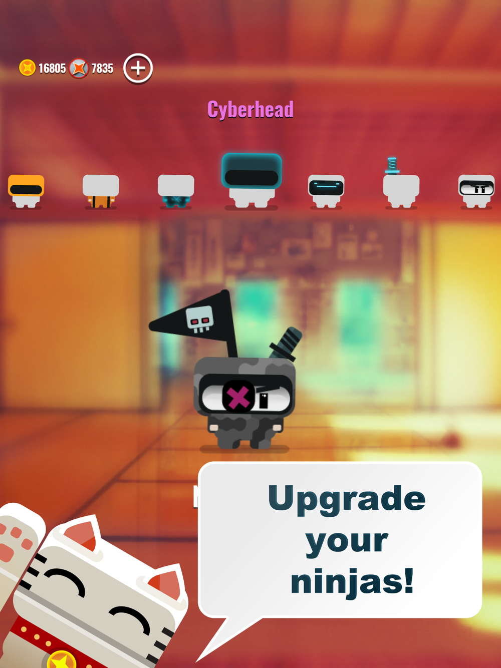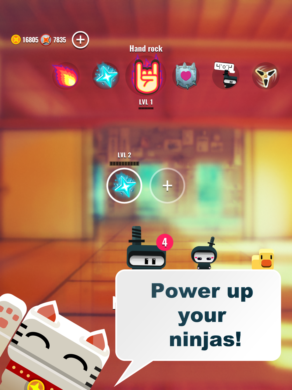 ● CUTE NINJAS - unlock 4 fancy ninja heroes each with its own perks changing the gameplay;