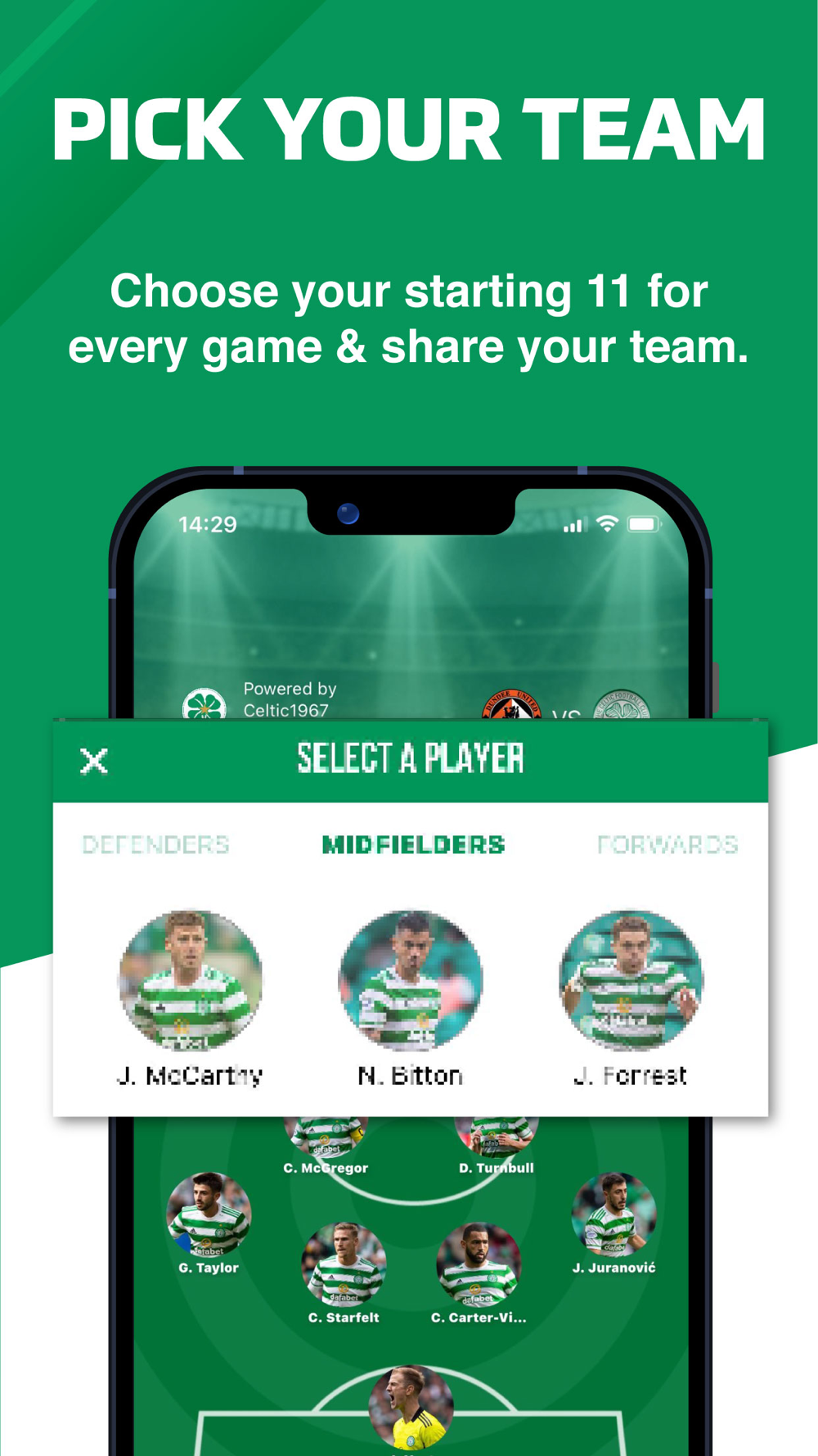 Choose your starting 11 for each Celtic fixture on our line-up builder and share with your friends socially.