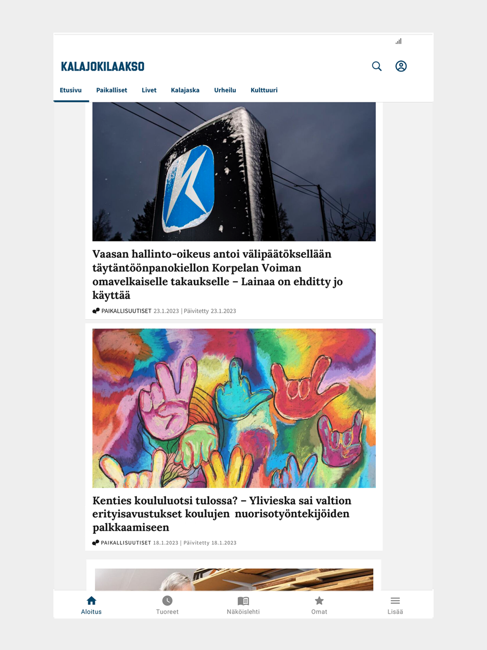 Sovelluksen kautta pääset kätevästi lukemaan viimeisimmät uutisartikkelit ja näköislehdet, sekä katsomaan videosisältöjä.