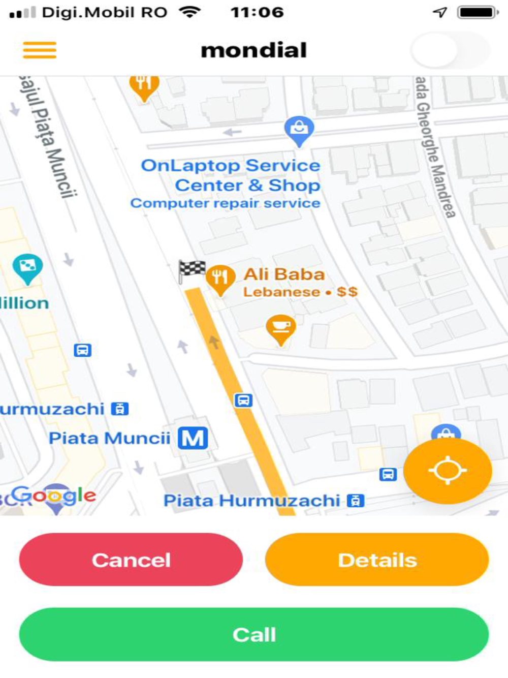 The customer selects the destination where he wants to reach, and the application calculates the optimal route based on distance and time.