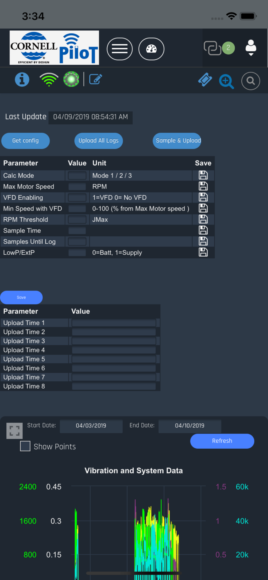 Cornell Co-Pilot allows you to monitor single and multiple pumps via IIoT cloud. With built-in battery power, you can monitor temperature, vibration and GPS location, and additionally monitor flow, pressure, start/stop operations and more when connected to external power. The real time pump data can be used for maintenance, wear estimation, and critical conditions, as well as receive alerts for preset running conditions.
