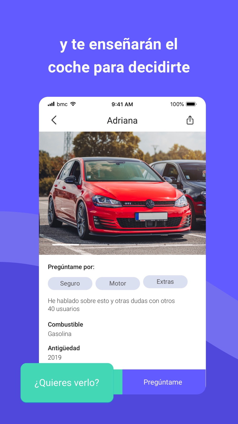 Pregunta GRATIS tus dudas sobre el coche que buscas a personas que tienen ese mismo modelo. Entra en la aplicación, busca el coche que quieres, pregunta y pide que te enseñen el coche en persona.