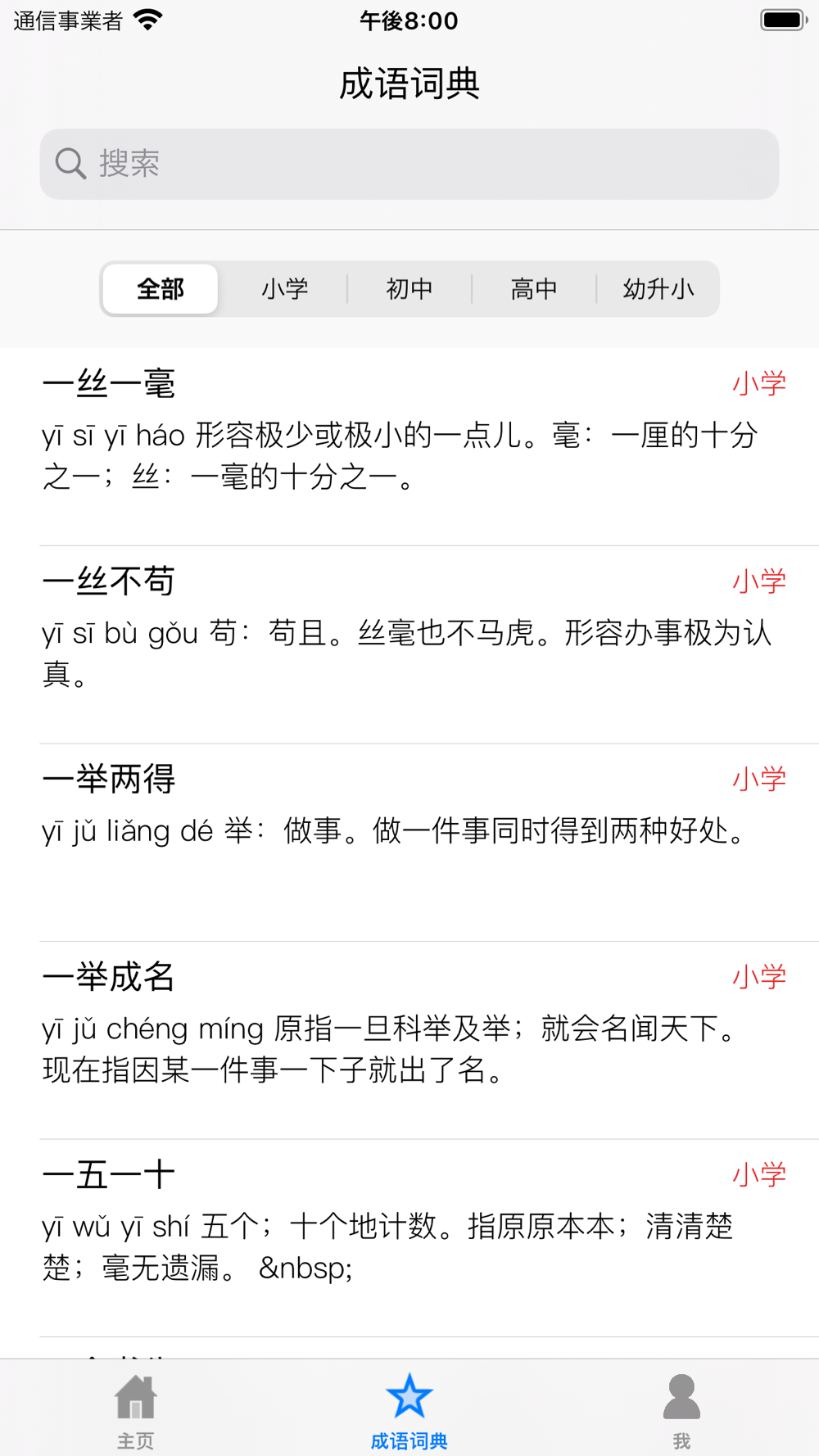 这是一款同时兼具注意力训练、成语学习、识字练习的高效K12语文学习软件。界面风格简洁明了,摈弃多余的干扰元素。针对学前至高中的常用成语,进行学习和训练。专注力、识字、记忆、理解完美融合,在掌握知识的同时,让孩子在反复练习中同步养成高效的学习习惯。