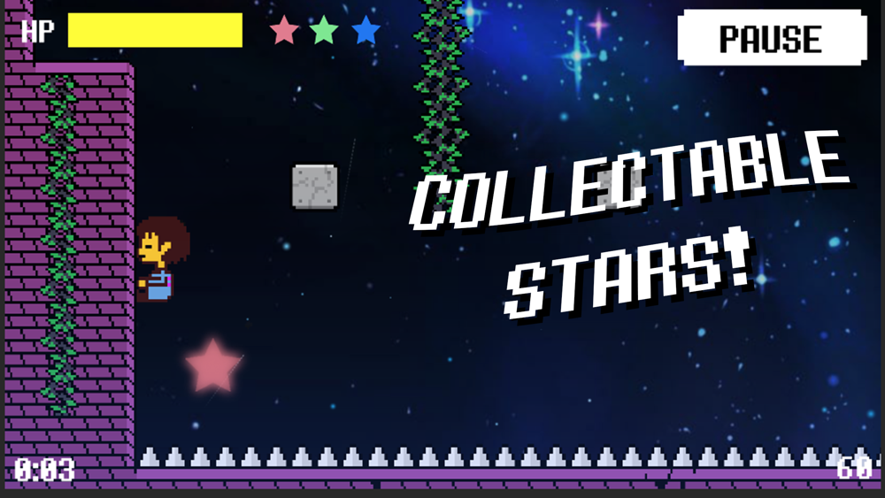 In this platform game, play as Frisk and defeat enemies such as Papyrus, Whimsun and Froggit. There are 3 collectable stars in each level. Compare how many stars you have collected against the Game Center leaderboards!