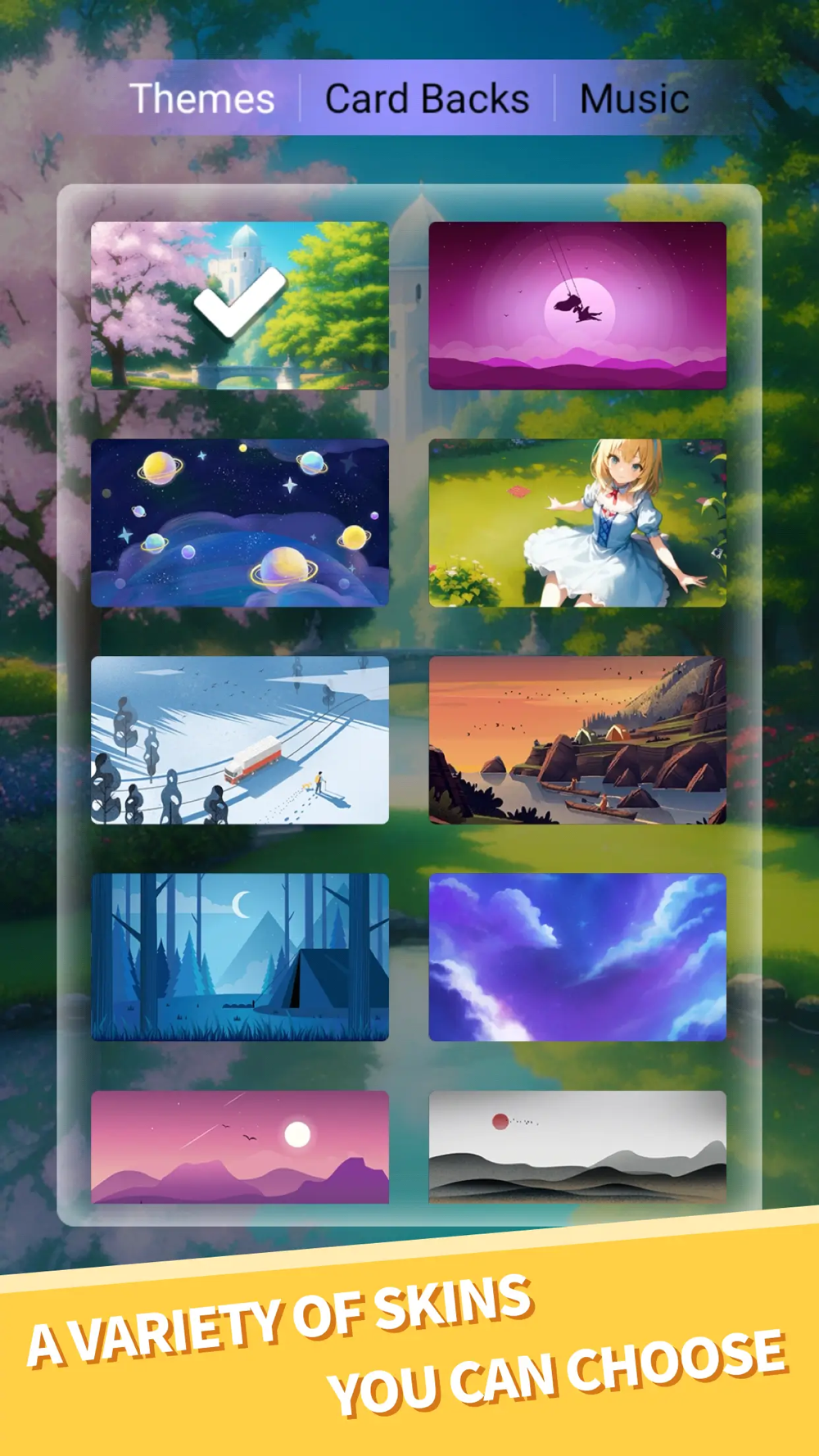 Anime Solitaire is a collection of relaxing yet addictive classic logic games including SOLITAIRE, SPIDER, 2048, and SUDOKU. Play games and unlock different themes, card backs, and game music.