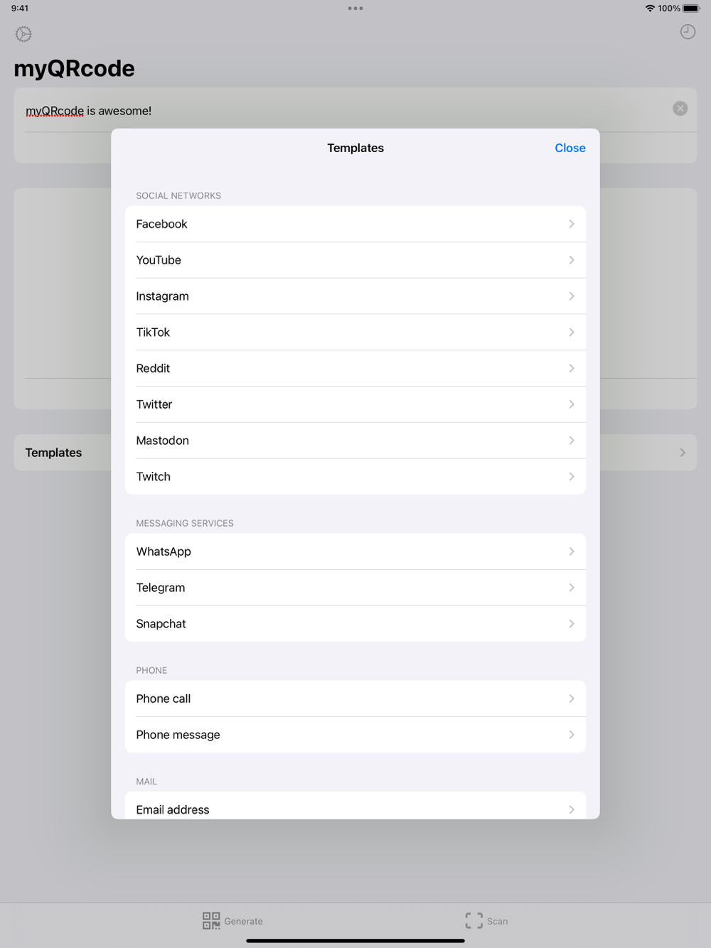 myQRcode is a small, fast and completely free app for your iOS or iPadOS device.