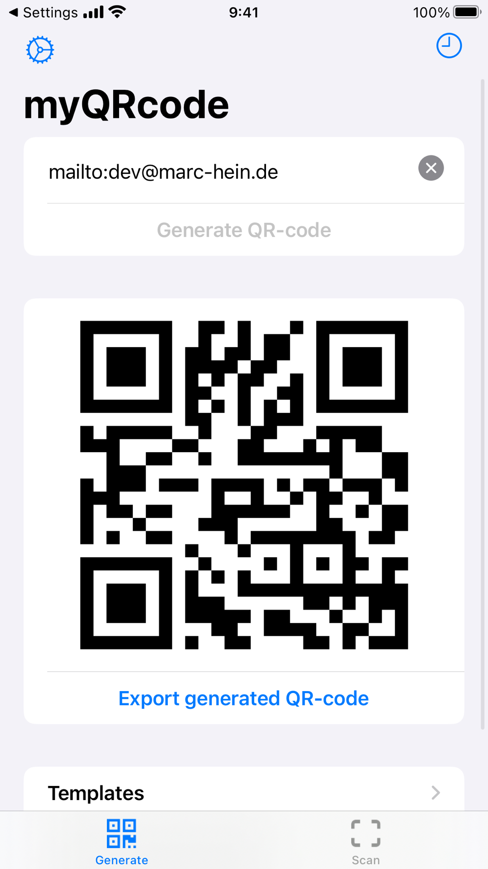 If you have any questions, comments or problems, you can contact me at any time in the app under Settings > "myQRcode support“!