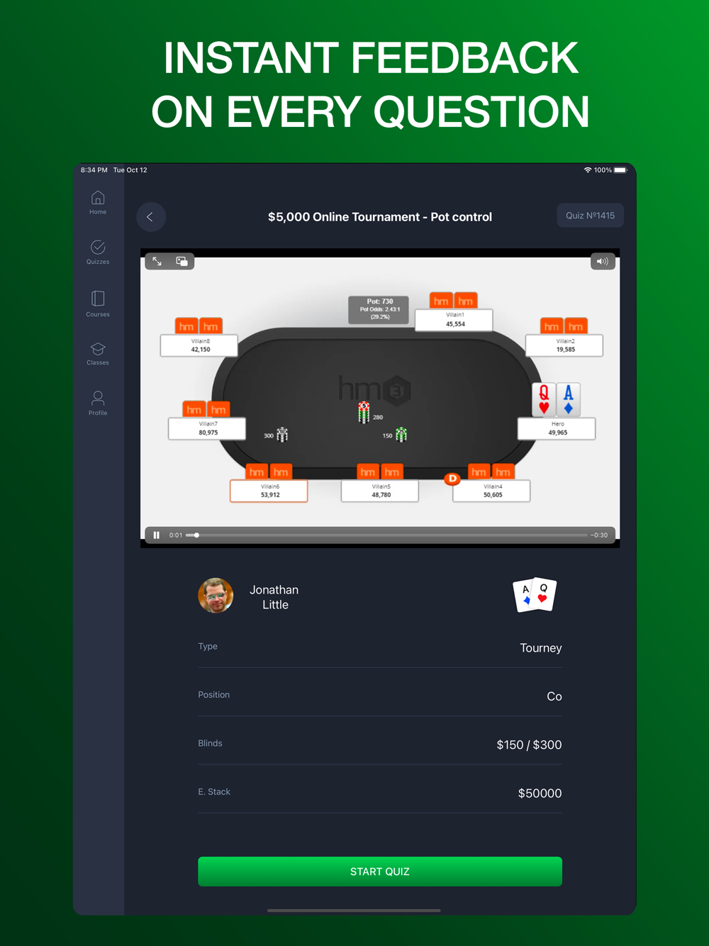 Our interactive hand quizzes provide instant feedback from our top-level coaches with over $74 million in combined poker earnings.