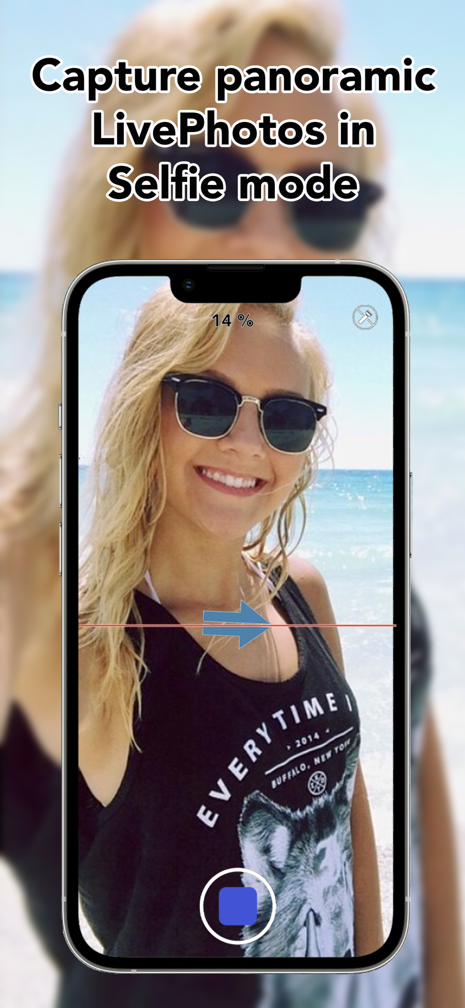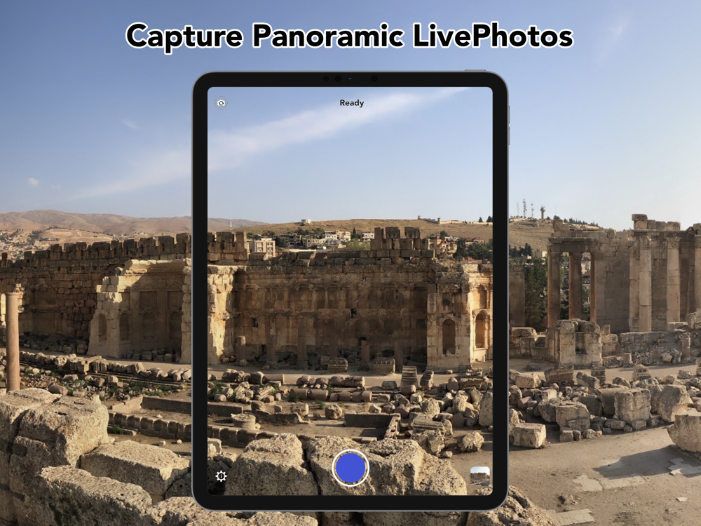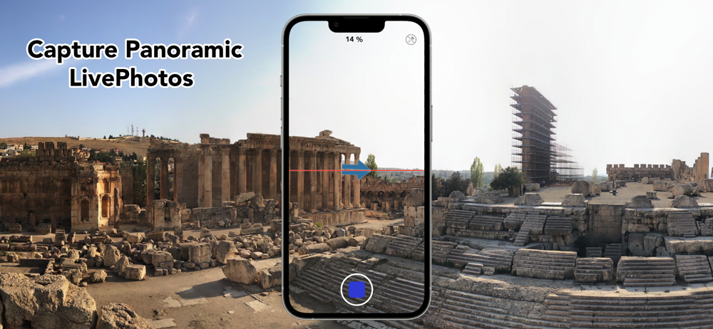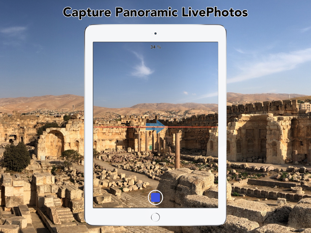 Just tap the camera button to start the shooting, and rotate slowly. The app will automatically stop the shooting once you have done 360 degrees, and create a LivePhoto panoramic 360. You can also tap the camera button if you want to stop the capture before doing the 360 degrees rotation and create a LivePhoto Panoramic.