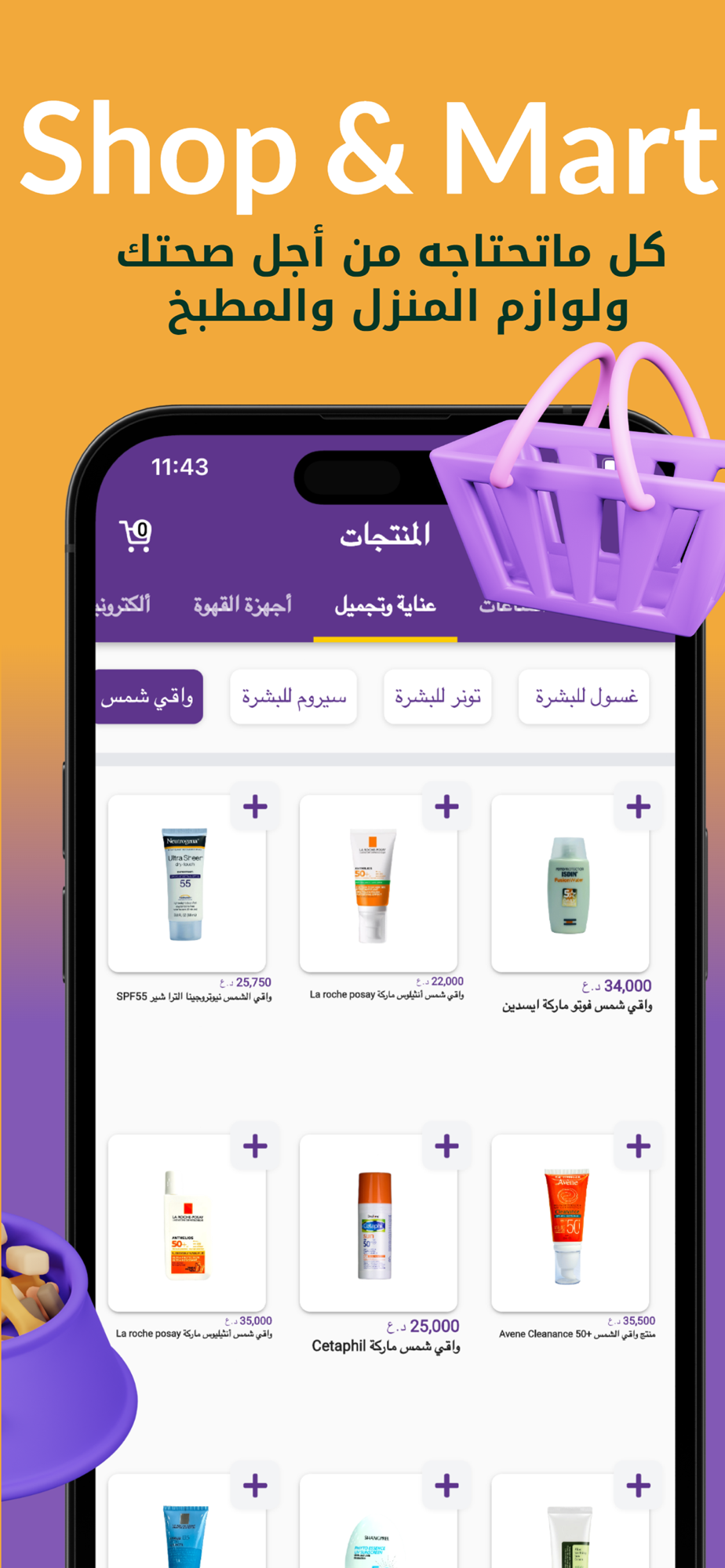 • تسوق عبر الإنترنت من الصيدليات ومحلات البقالة والصحة والجمال والأزياء ومستحضرات التجميل والعطور والقرطاسية والزهور والإلكترونيات والأجهزة المحمولة ومتاجر الألعاب