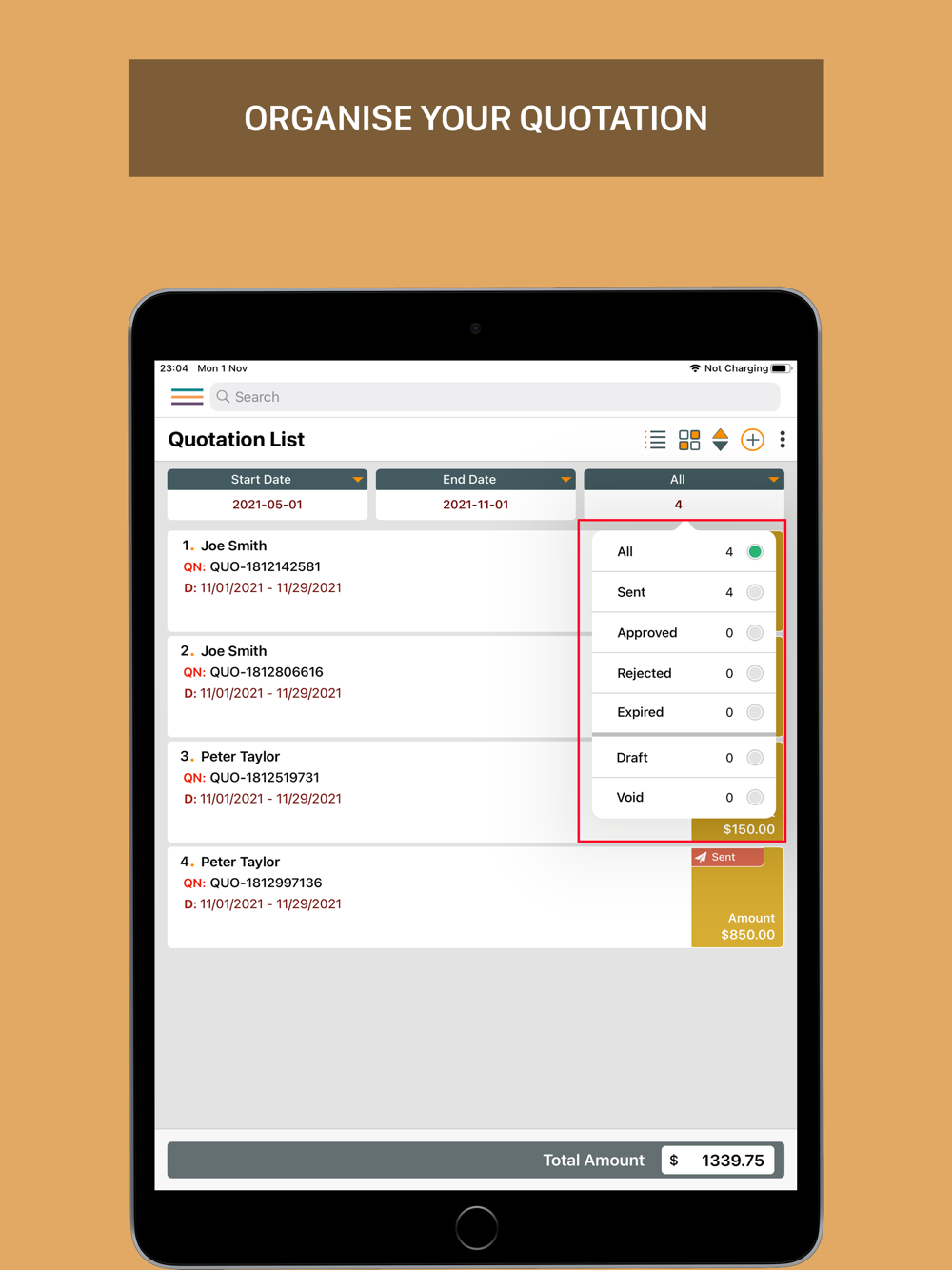 • WIN JOB OPPORTUNITIES - Before you leave your client, send them an instant quotation. Give them an opportunity to approve the quotation on the spot.