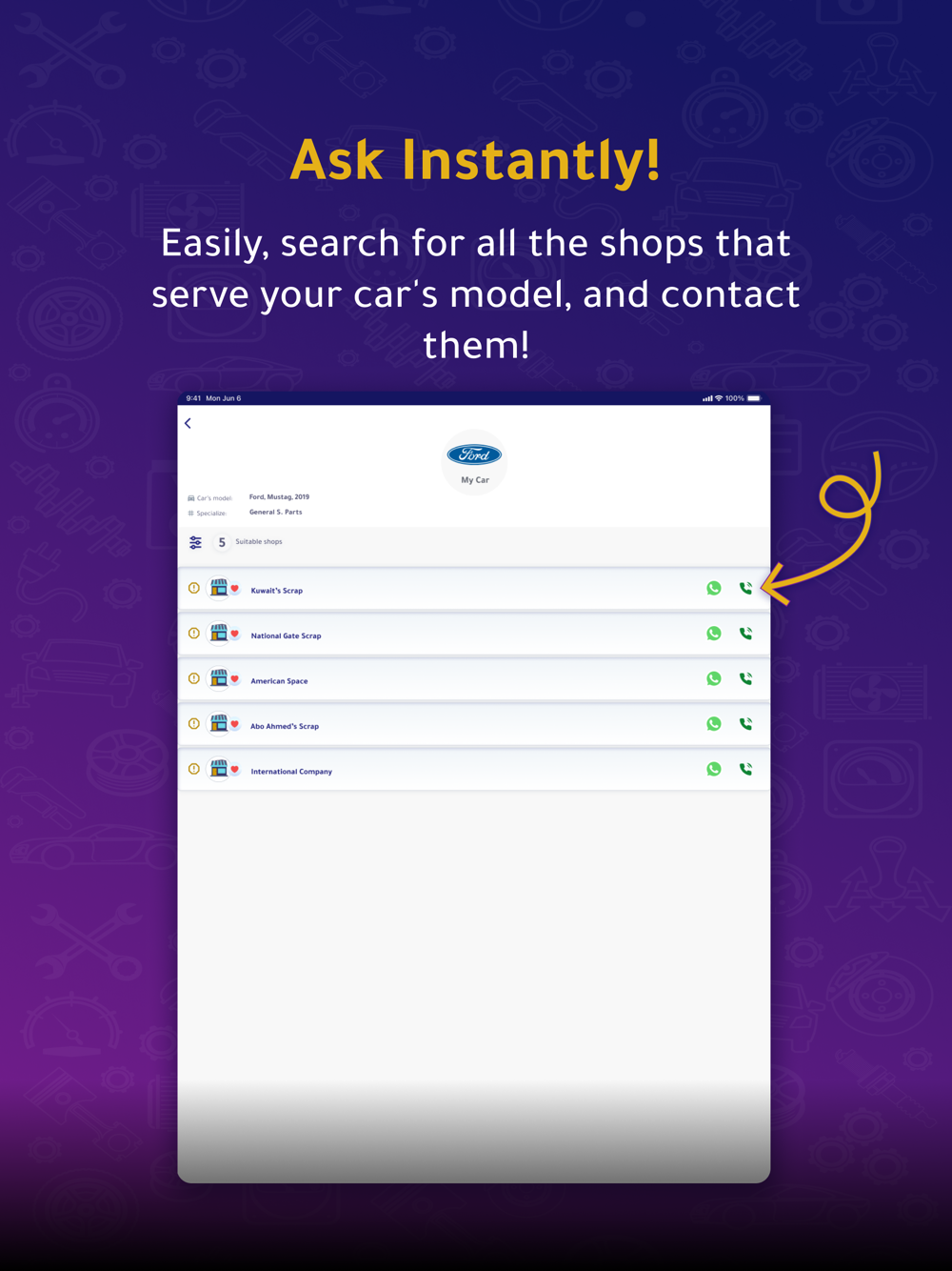 The application displays all used car parts available in the Scrap in Kuwait and UAE, and delivered them to the desired address whether it is a home or a repair garage.