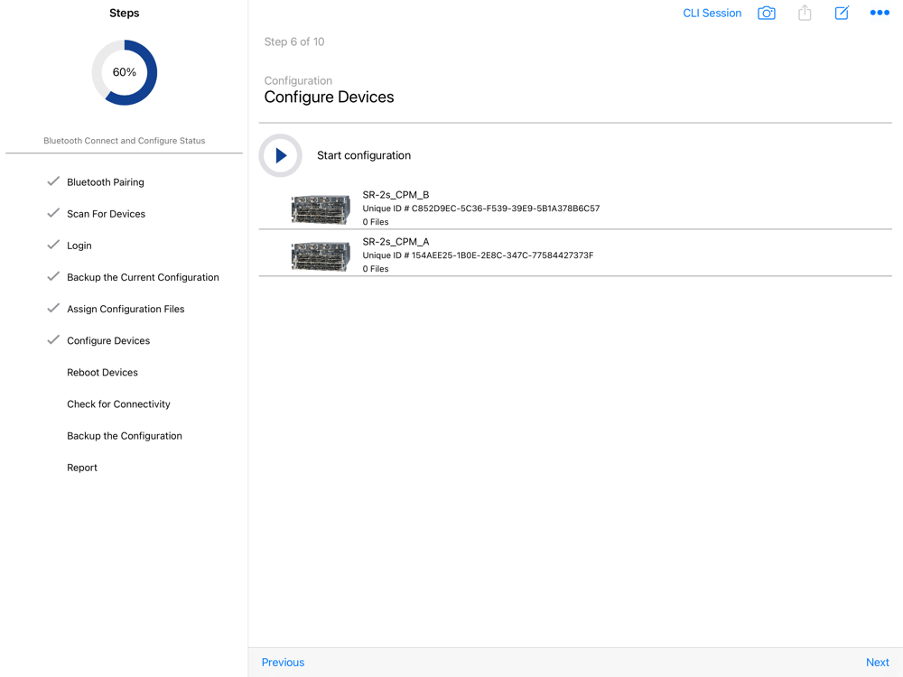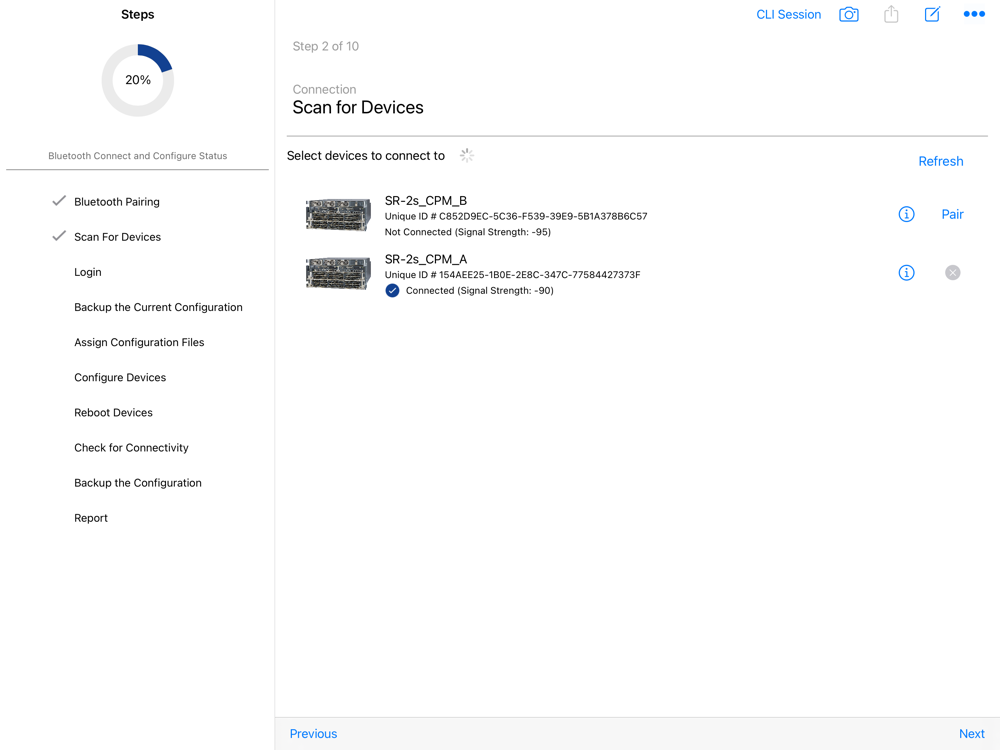 SR OS Connect can pair via Bluetooth with a maximum of five NEs during a configuration session.