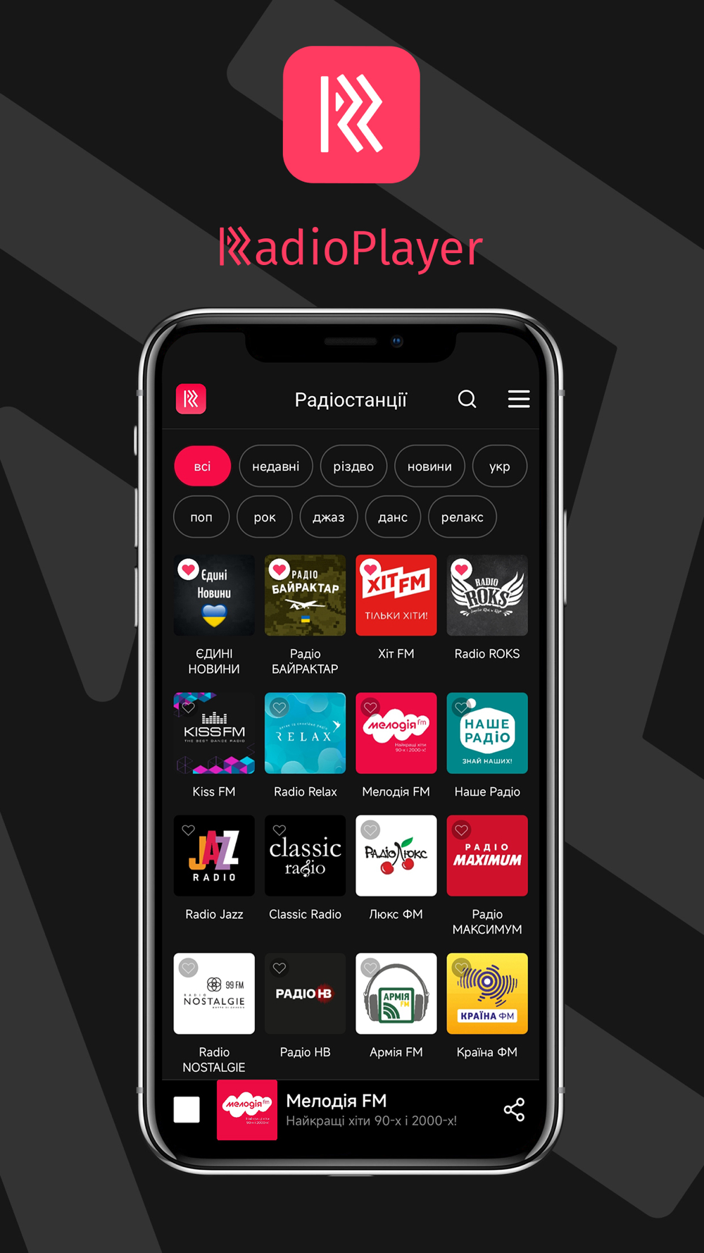 With a stylish and user-friendly interface, we have made RadioPlayer as easy to use as possible and collected Ukraine's most popular radio stations in one application.