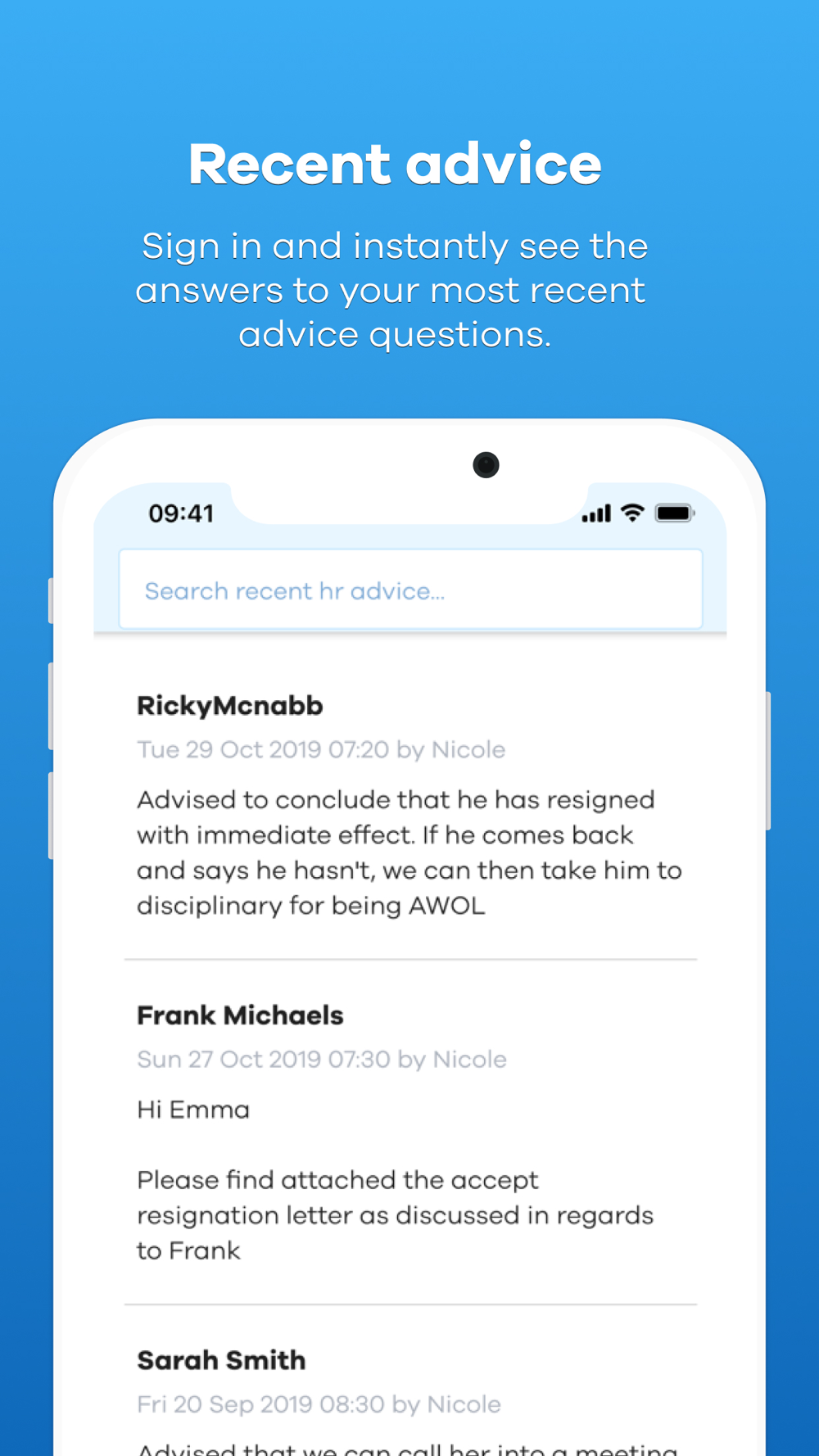 + Ongoing advice. Check the current status of your outstanding queries on the go.