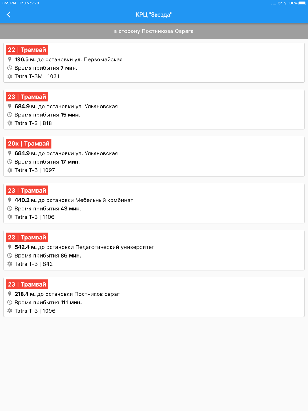 Приложение подскажет, где находятся ближашие остановки, при выборе остановки приложение отобразит список ближайших автобусов, трамваев и троллейбусов.