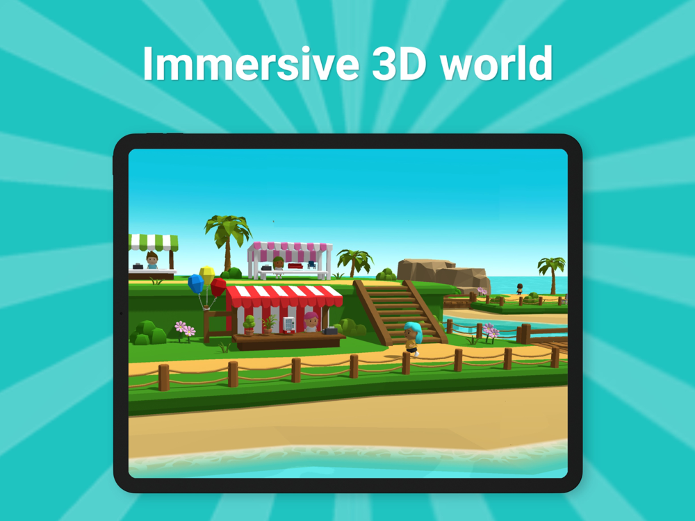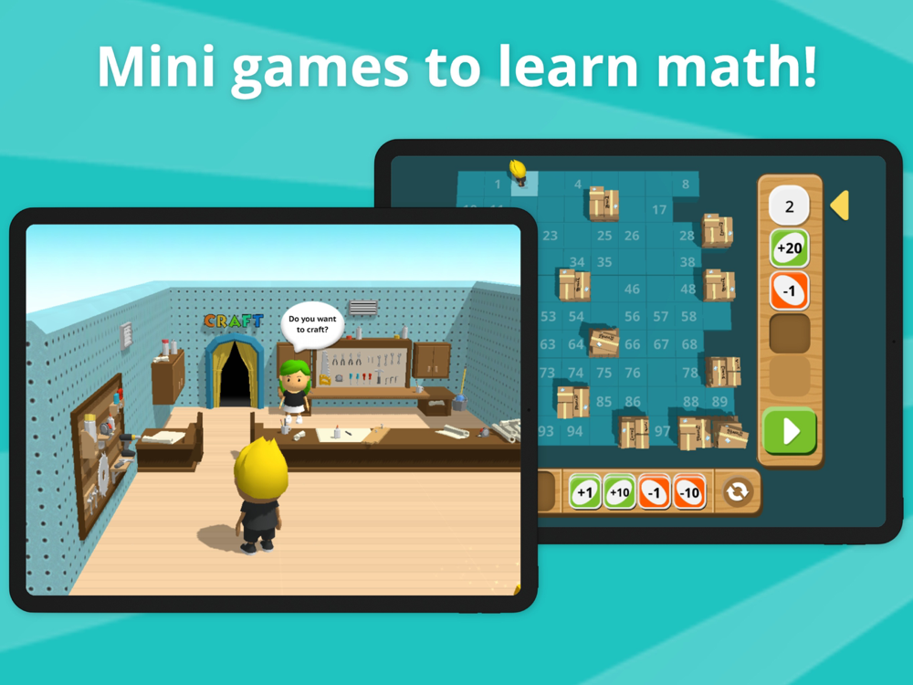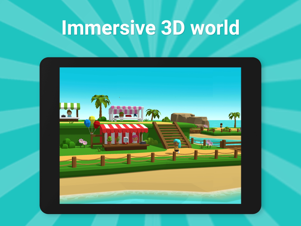 Teachley: Market Bay is a unique 3D world where children are immersed in doing math everywhere they go! They can buy and sell objects at the Marketplace, visit local shops to purchase or craft new items, collect and spend coins, customize their own character and home while completing daily quests. This fun and engaging world will have kids spending hours deeply engaged in math!
