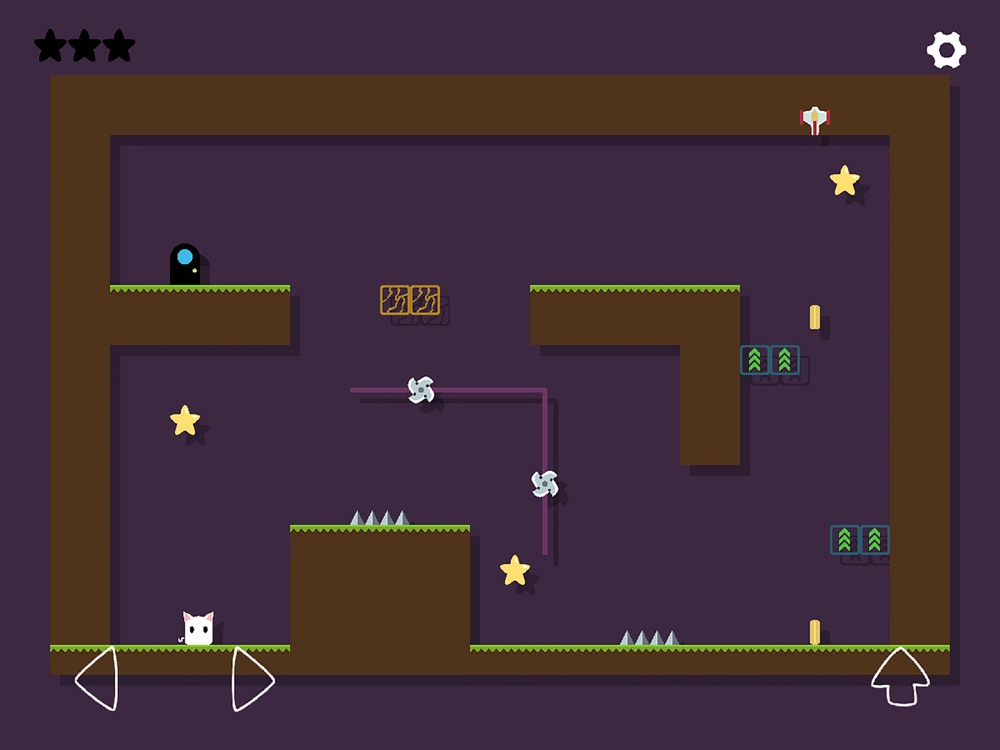 聪明的小猫来到了一处神秘的山洞中探险寻宝,但是洞穴中充满了陷阱和机关,我们需要以敏捷迅速的操作,帮助它躲避机关以及陷阱,顺利获得宝藏,成功离开这里。