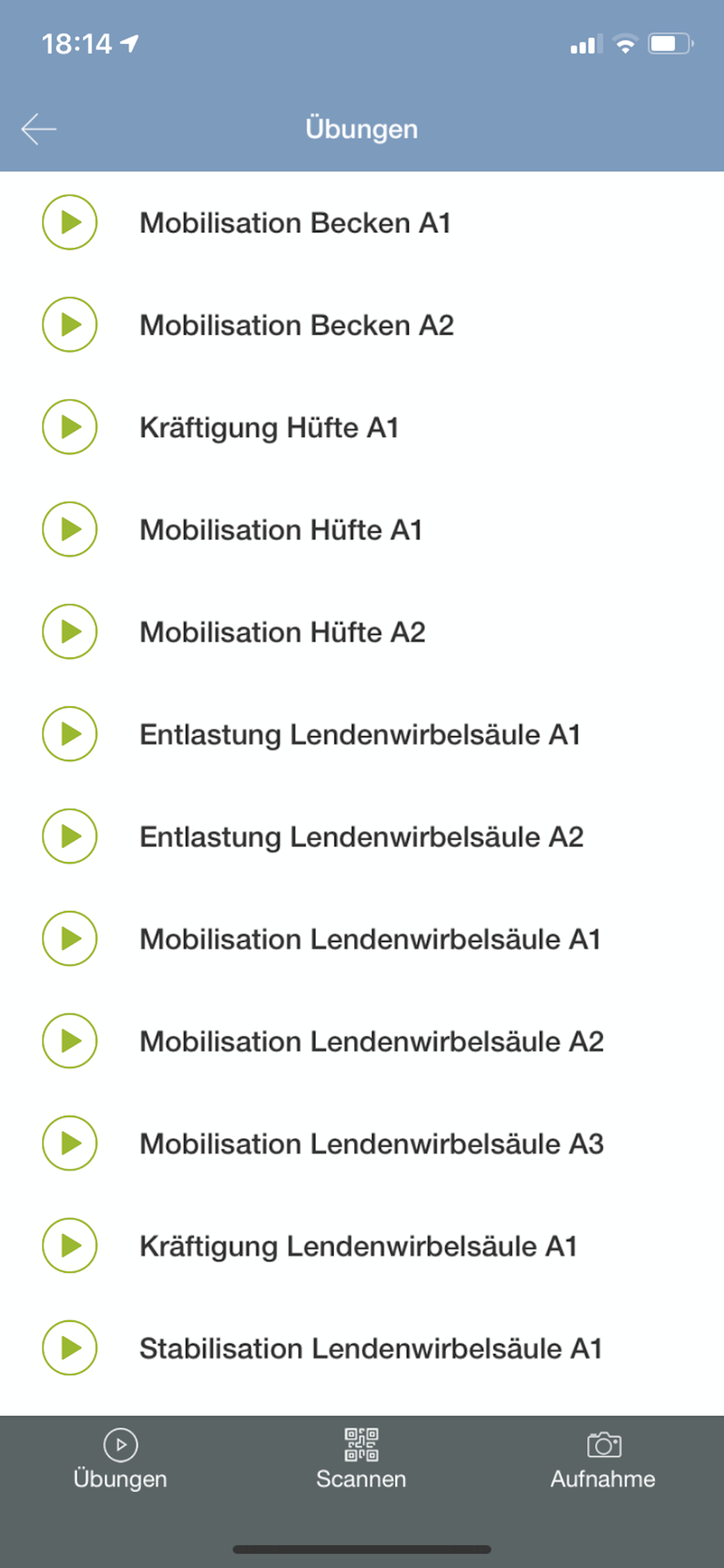 Dazu müssen sich die Patienten einfach die App herunterladen und aus der App heraus den QR-Code der Übung(en) scannen, welche der Therapeut für sie ausgewählt hat.