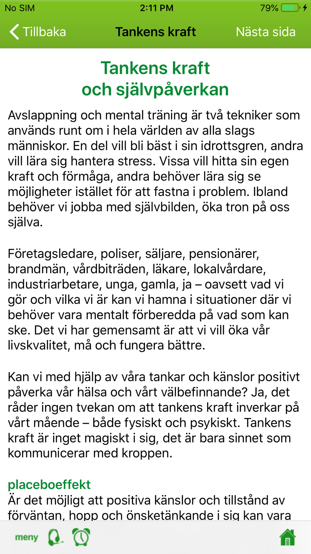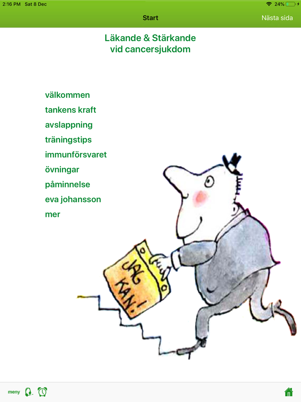 Den här appen är ett stöd för att orka med sig själv och alla behandlingar under en tuff period i livet. Ett stöd och en hjälp för att bygga kraft, tro, mod och tillit. Tanken är att du som cancerpatient ska få hjälp att hitta din egen, djupt liggande inre förmåga att läkas, känna större sinnesfrid och kunna uppleva livskvalitet också när det känns som svårast.