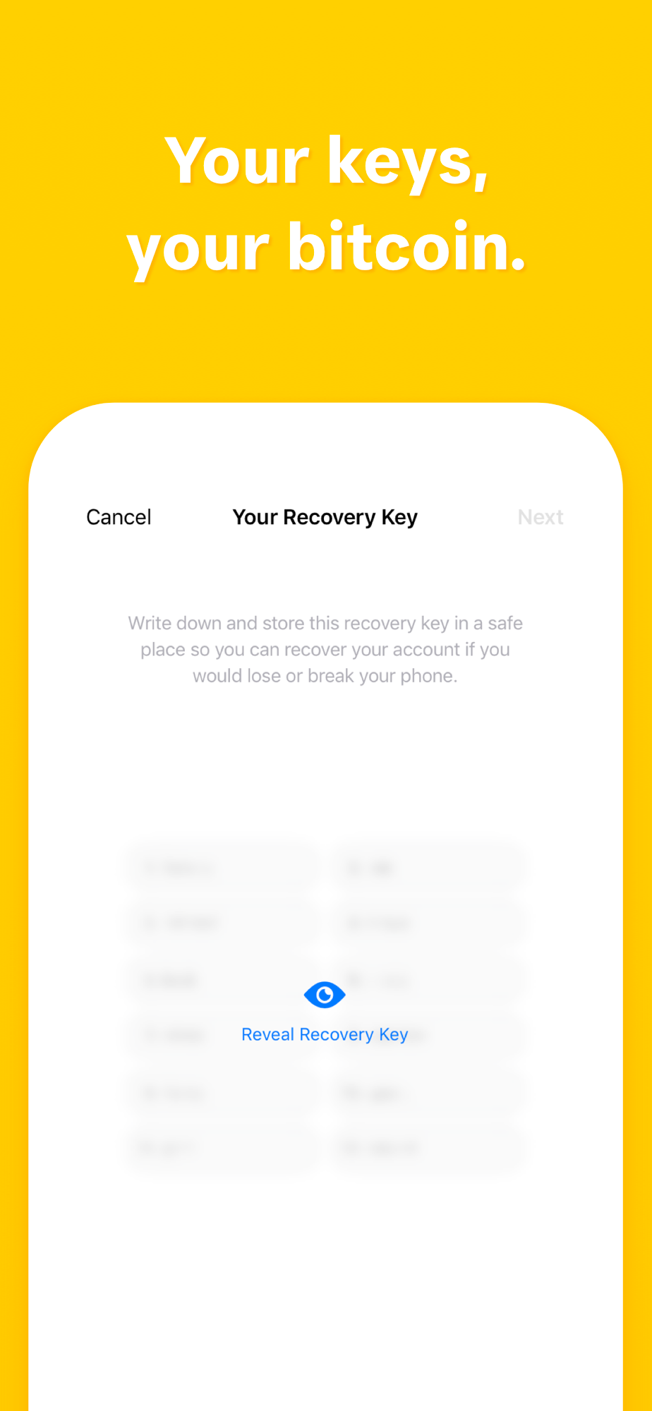 A recovery key is used to generate your account. By safely storing this key you can recover your account in case you would lose or break your phone. By default, the recovery key is stored in your iCloud account.