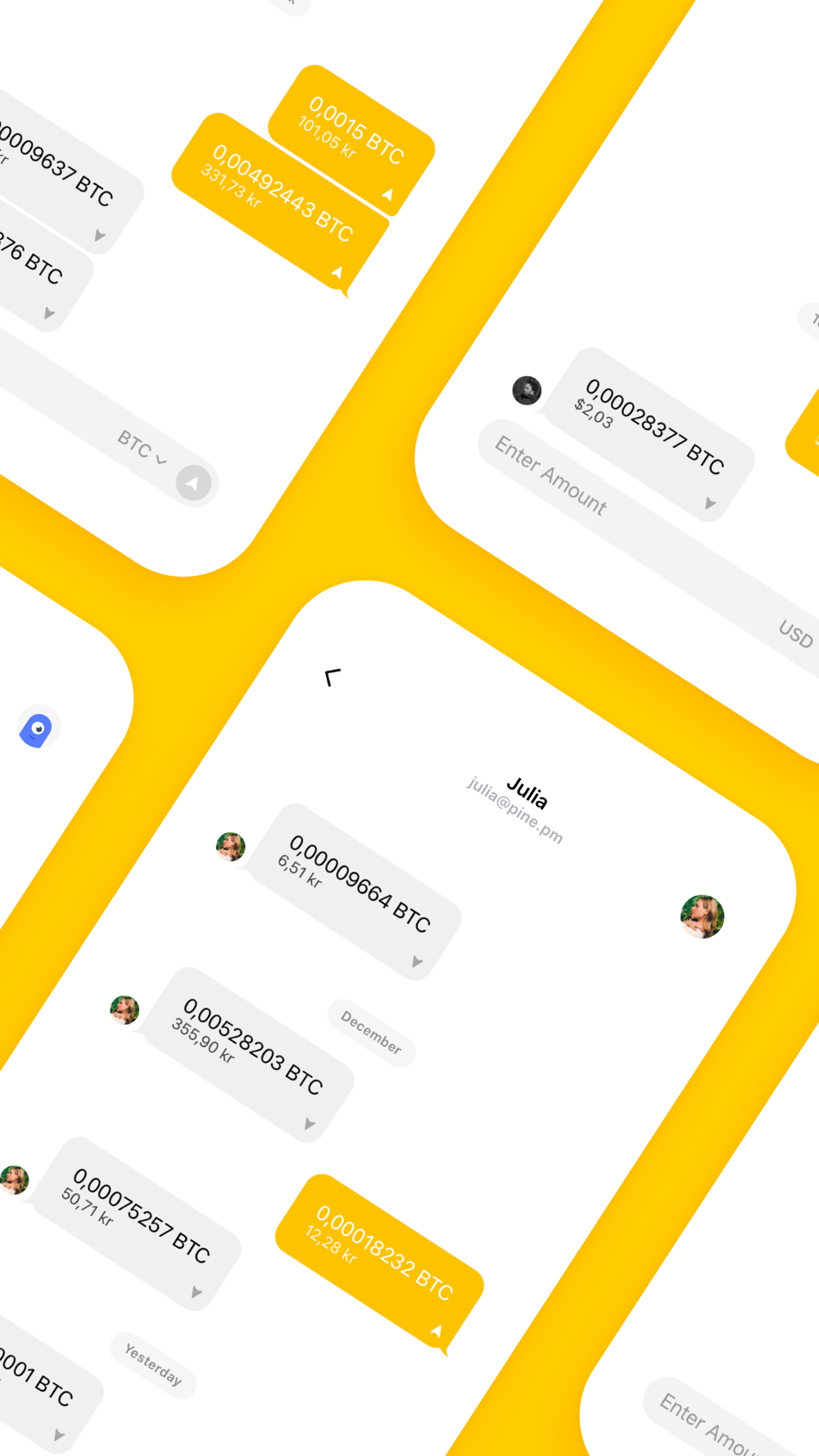 Bitcoin does not have any borders. Transact freely with anyone anywhere in the world – they don't even need to use Pine, as long as it's bitcoin.