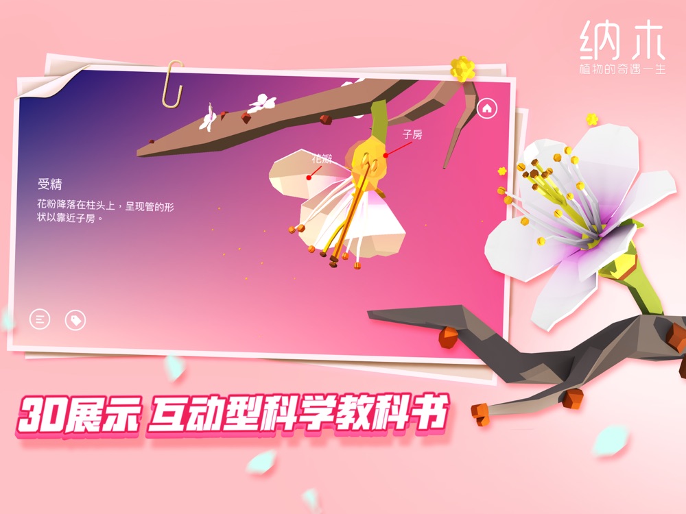 《纳木》是一款对植物一生进行探索的植物细胞科普类游戏。在树木和花草的生长过程中,有许多很基本而又令人好奇的事情,从叶子是怎么进行光合作用,到用地下的根系统做各种实验,或是体验植物细胞的构成部分,在游戏中都可以轻松了解。游戏通过3D交互的模式,帮助孩子们更深入地了解植物生长的科学原理。