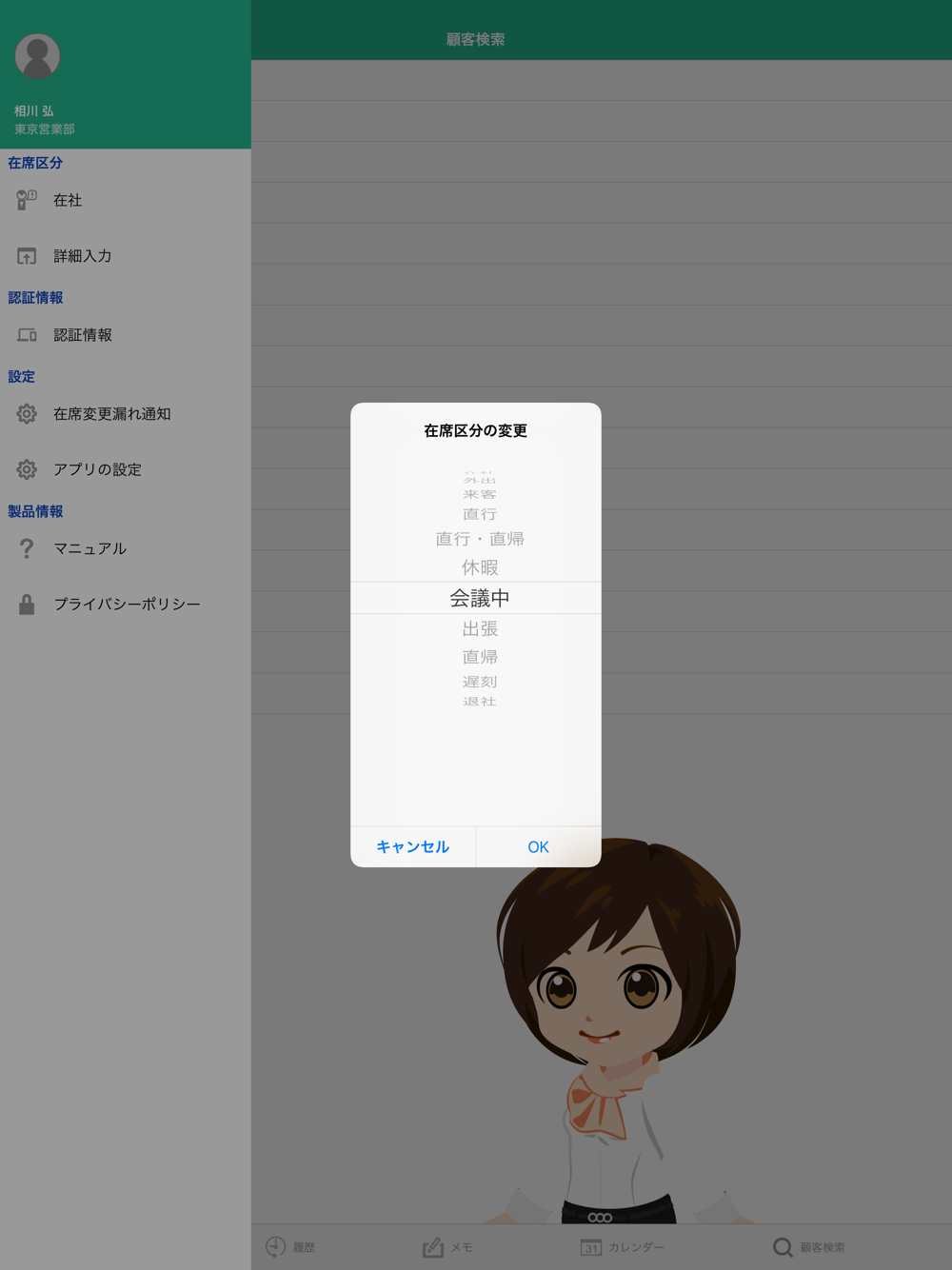 その他にも、NI Collabo 360と連動して、アプリから在席状況を変更することもできます。