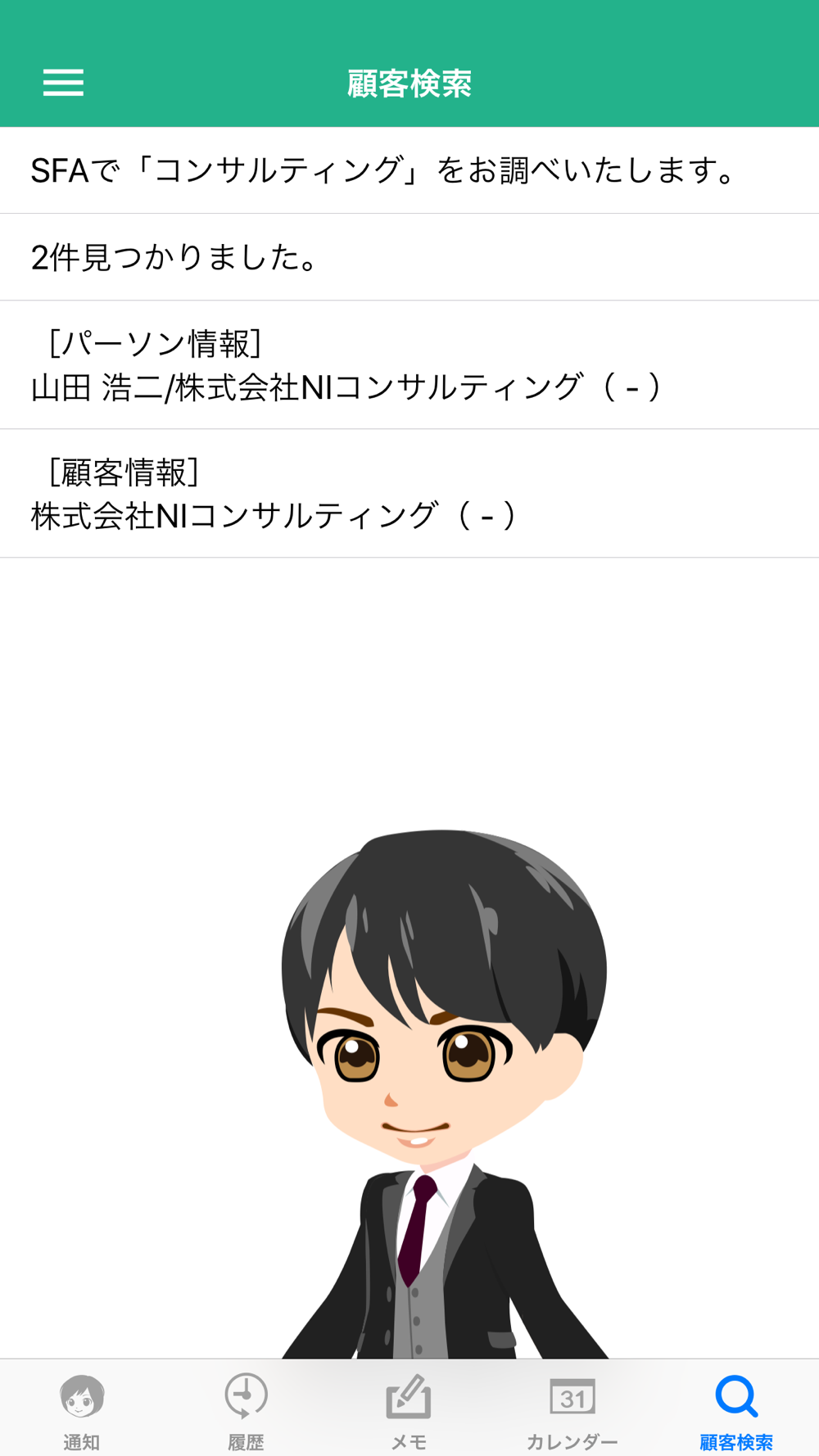また、音声認識機能により、顧客情報やパーソン情報を検索することもでき、営業活動のお手伝いをしてくれます。