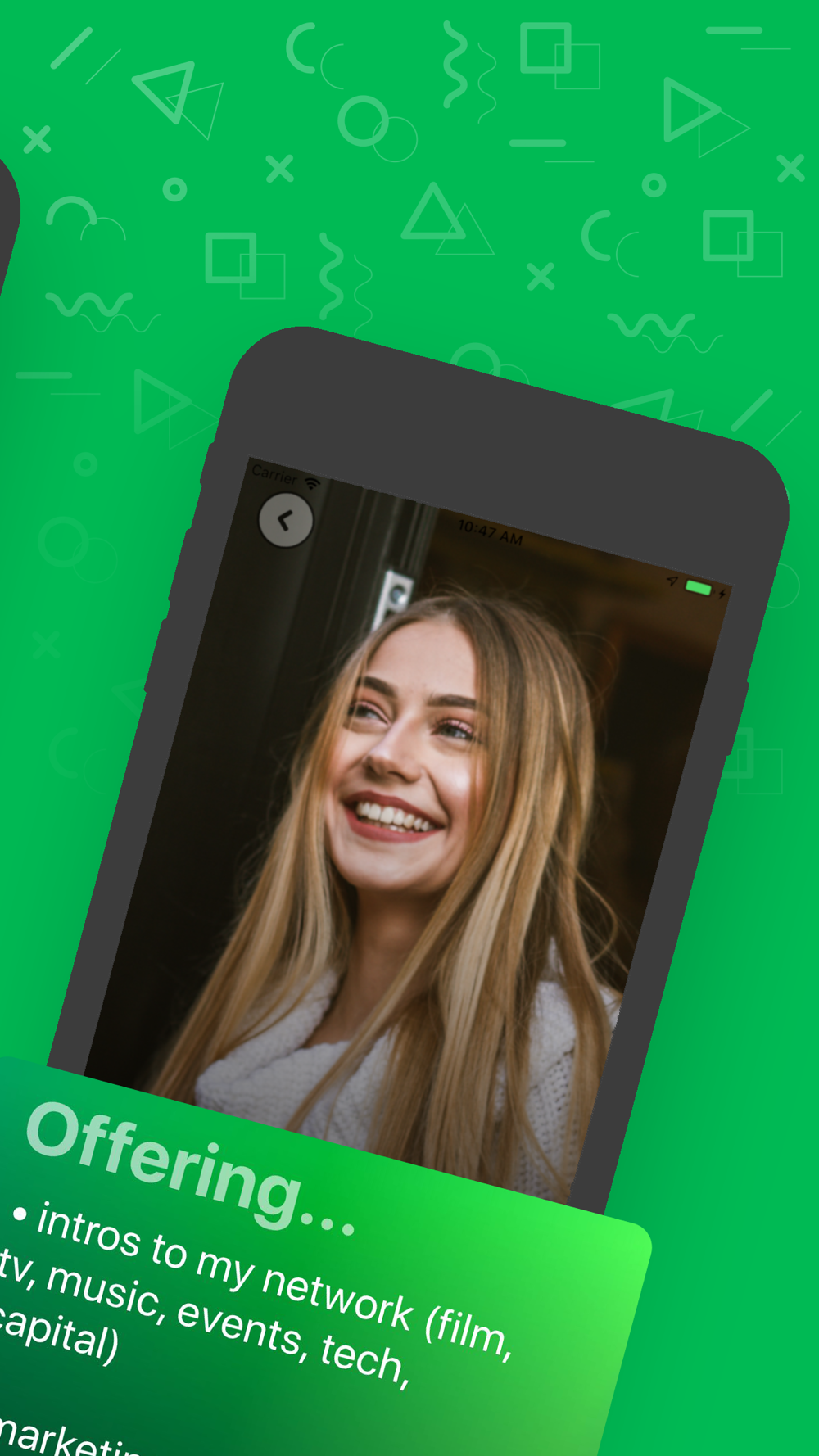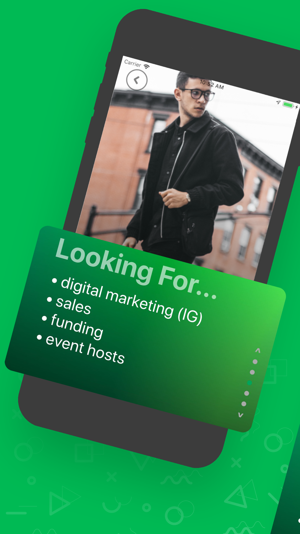 - Swipe through profiles of the people nearby you: see who they are, what they do, where they work, what they’re looking for, and offering. When you can see how your needs align, only connect with the right people you can immediately start working with. You don’t have to spend time and money sending a canned message to hundreds of people hoping that one will respond. Simply send a direct message to the RIGHT person looking for what you’re offering.
