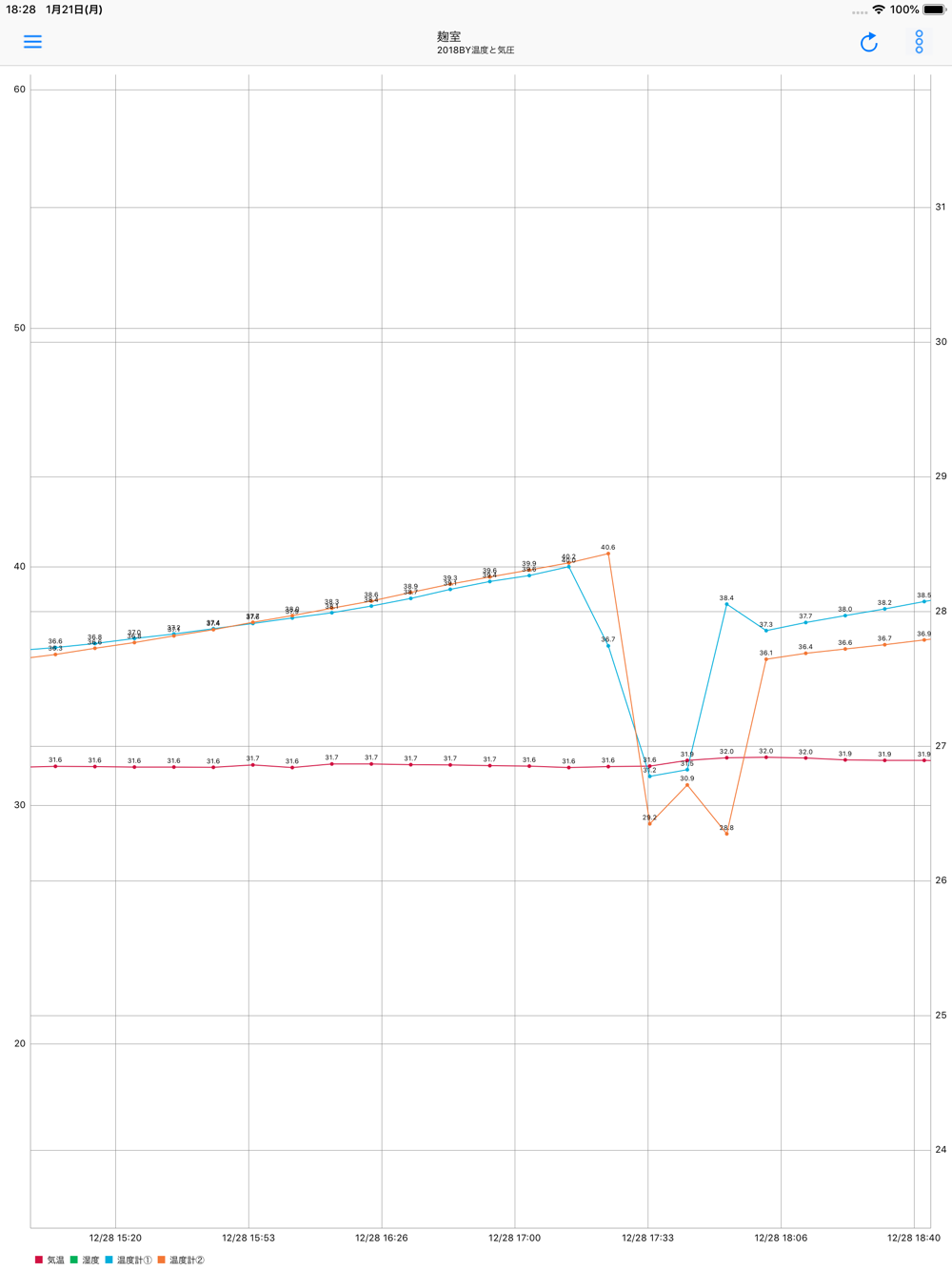 日本酒の醸造、とくに麹(こうじ)の発酵温度管理をお助けするためのIoTシステム「醸(kamos)」からサーバに送信される「気温」「湿度」「品温」をグラフ表示するアプリです。