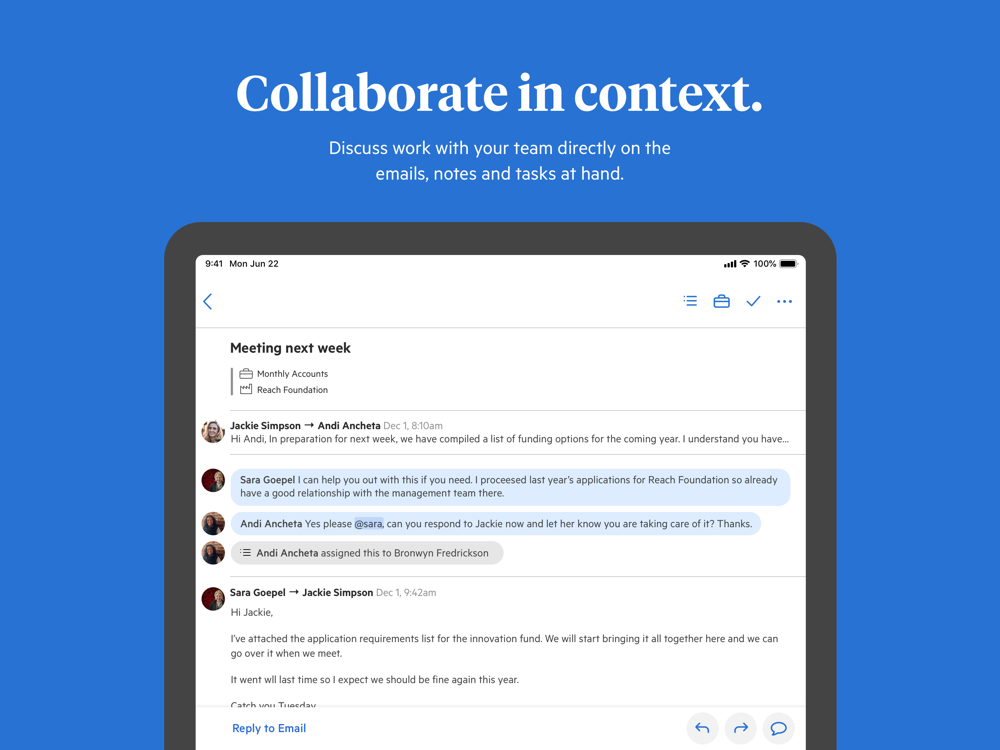 - Discuss work with your team directly on the emails, notes and tasks at hand.