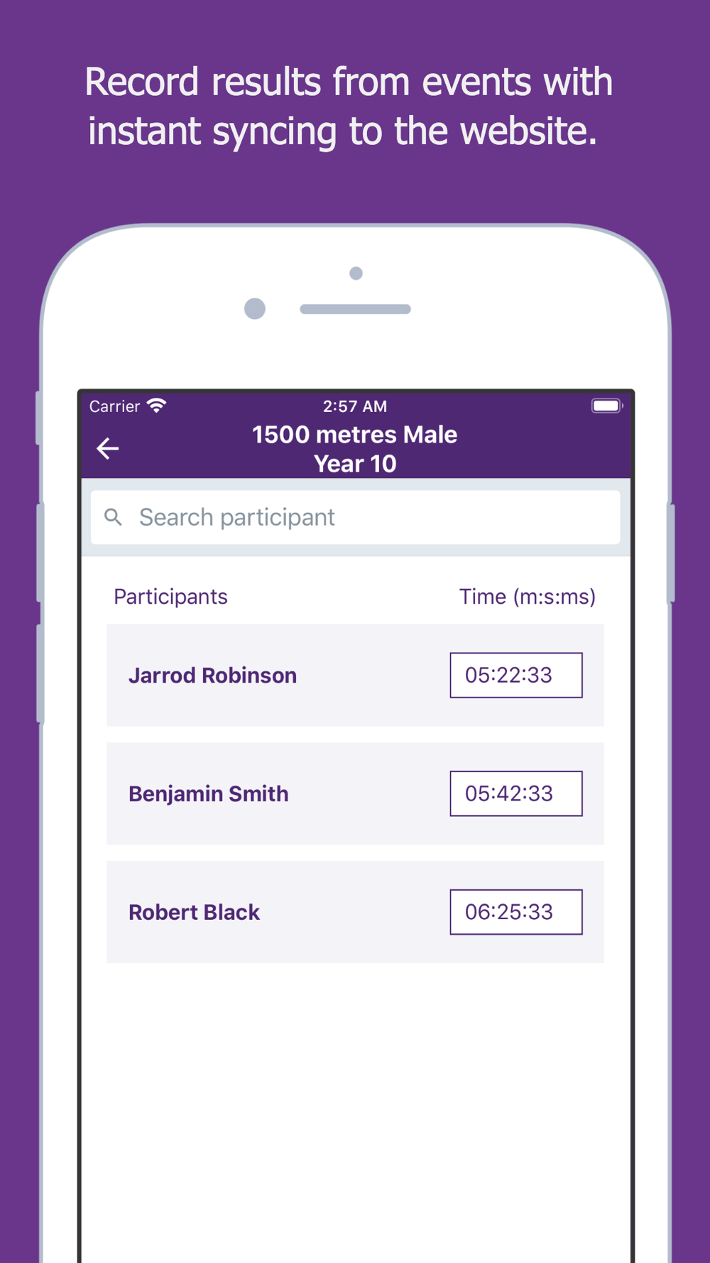 Results can be entered live into the Sports Tracker app directly from the event, with all results instantly syncing with the website.