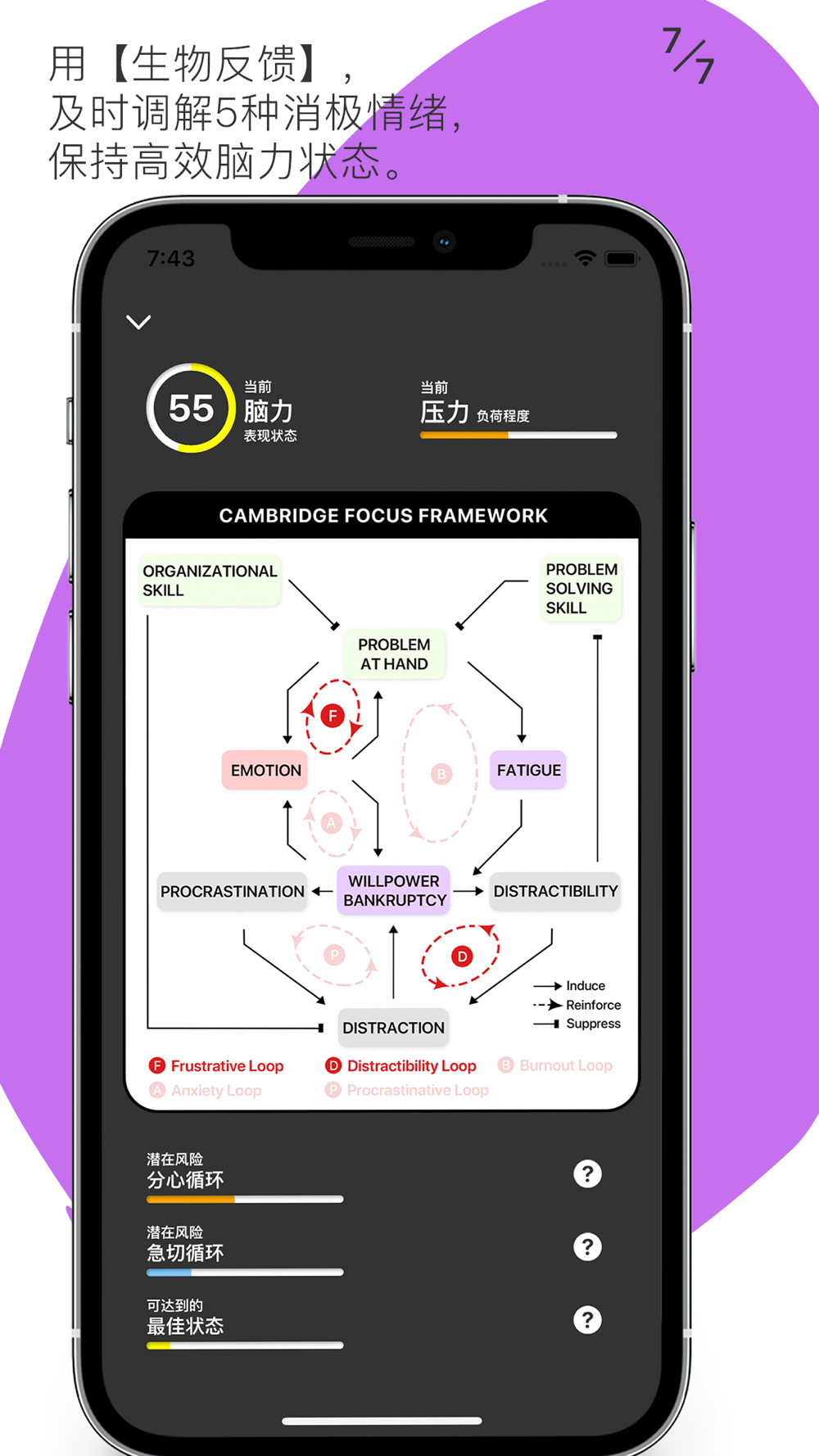 *消极情绪分析:评估焦躁,急切,分心,拖延,透支对专注的负面影响。