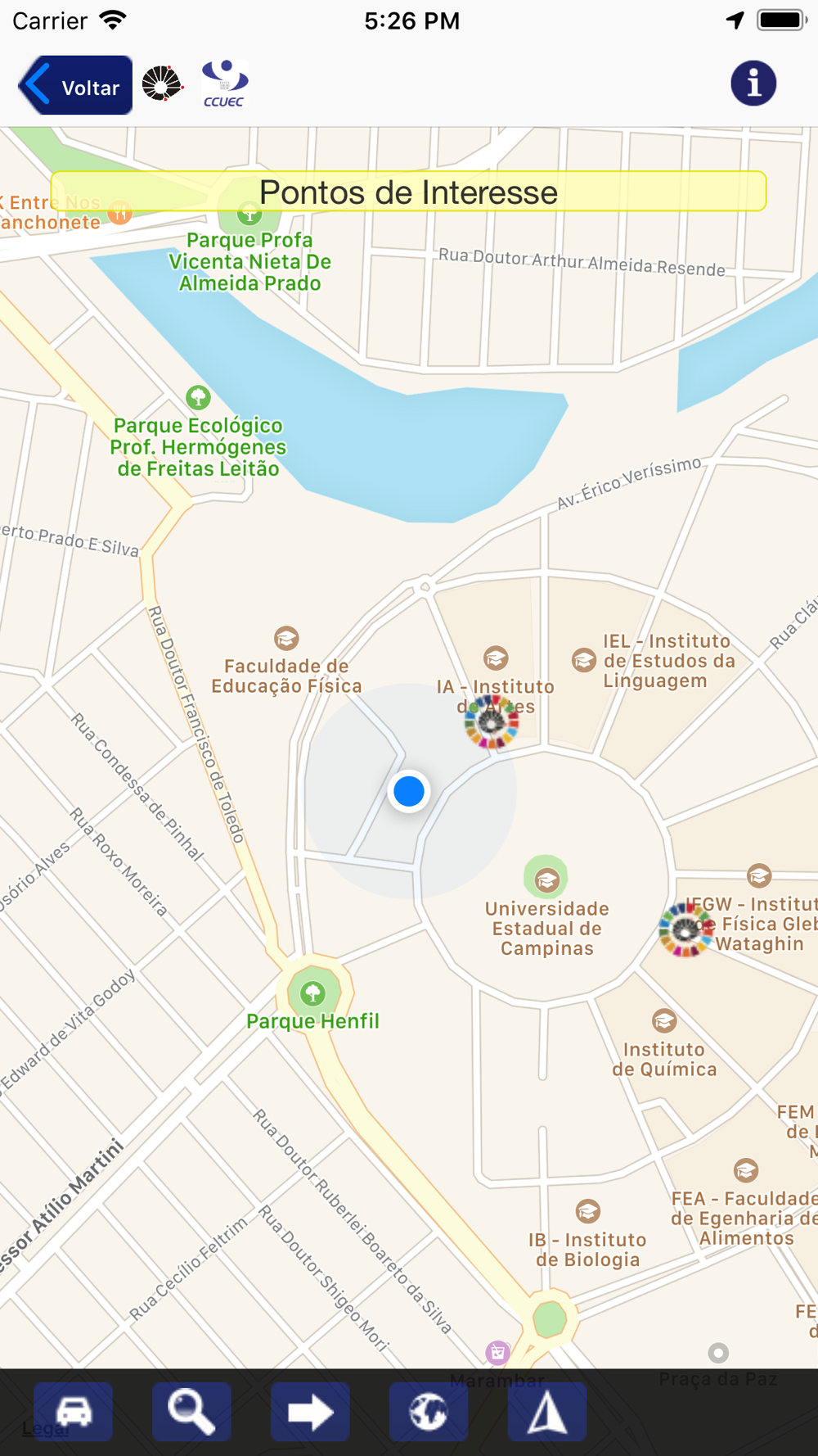 O aplicativo da Calourada Unicamp fornece uma consulta das atividades através de pontos de interesse disponibilizados em um mapa.