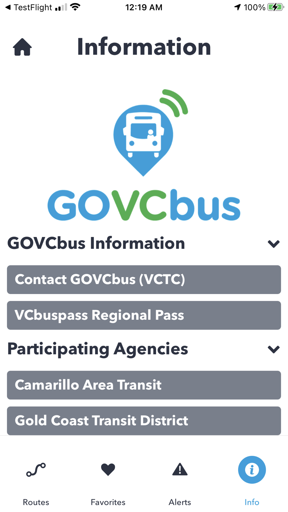 The GOVCbus app provides real-time arrival information for all bus services in Ventura County. Use the app to find out where Ventura County transit will take you, and when your next bus will arrive. Mark favorite stops, set reminders, get alerts, and plan your trip. This service is provided by the Ventura County Transportation Commission on behalf of the transit operators of Ventura County including Gold Coast Transit, VCTC, Thousand Oaks Transit, the Valley Express, Simi Valley Transit, Moorpark City Transit, Ojai Trolley, Kanan Shuttle, and Camarillo Area Transit.