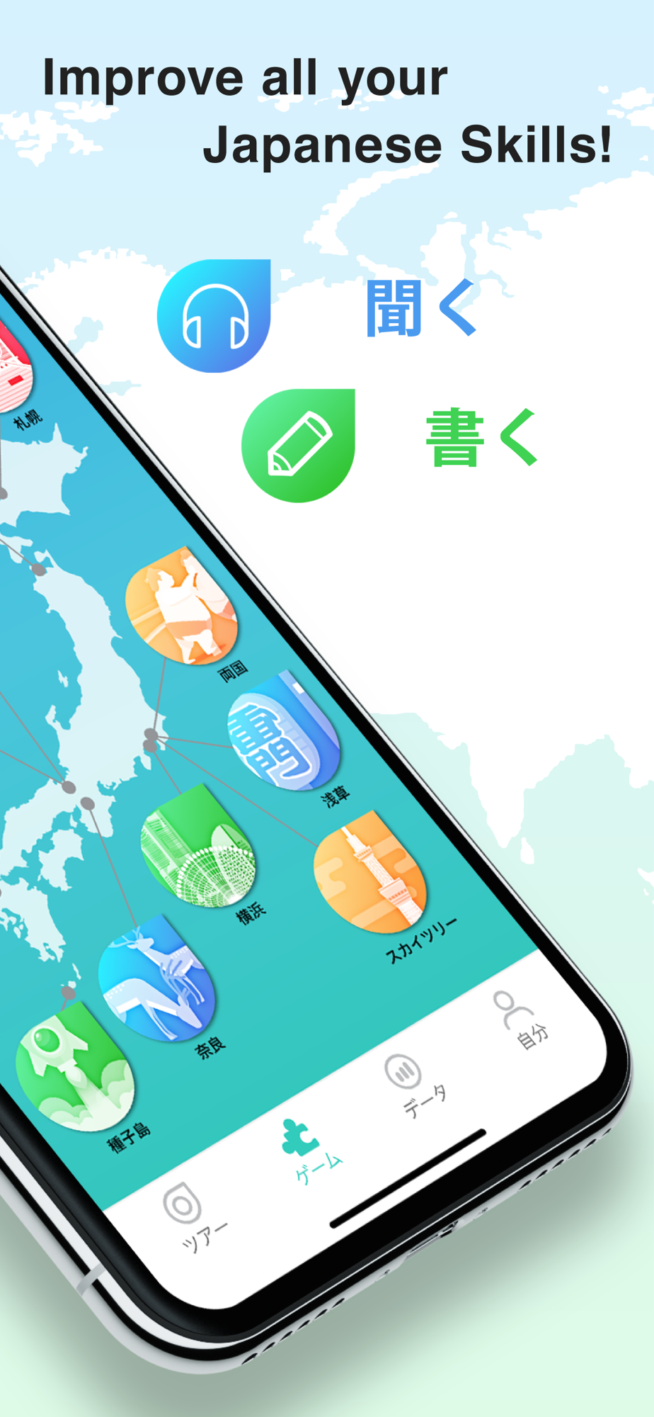 Play 12 unique games, each one developed to challenge your Japanese skills and push you further.