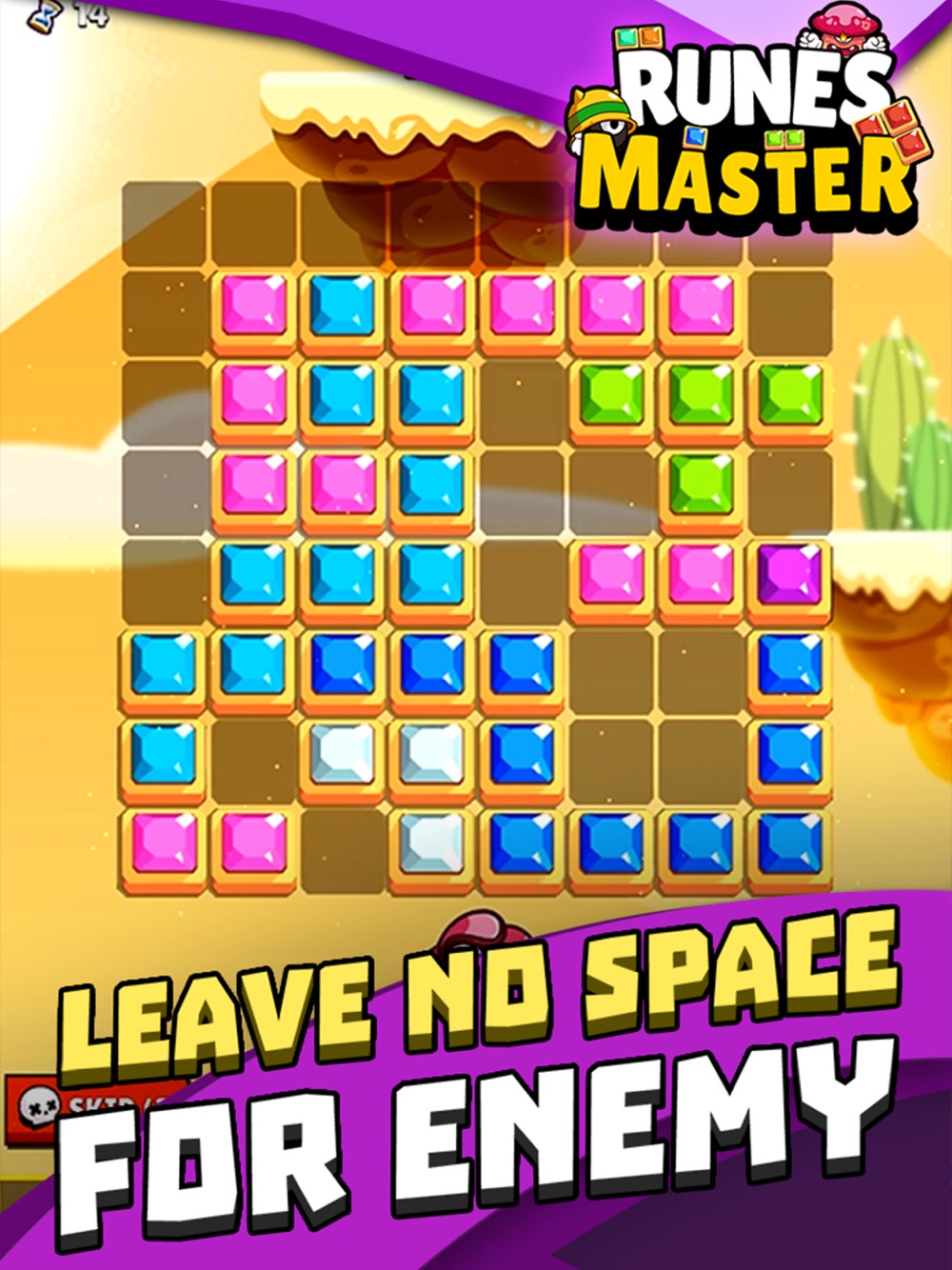 Runes Master is very simple, just place the blocks in a horizontal or vertical line to get points and hit your enemies.