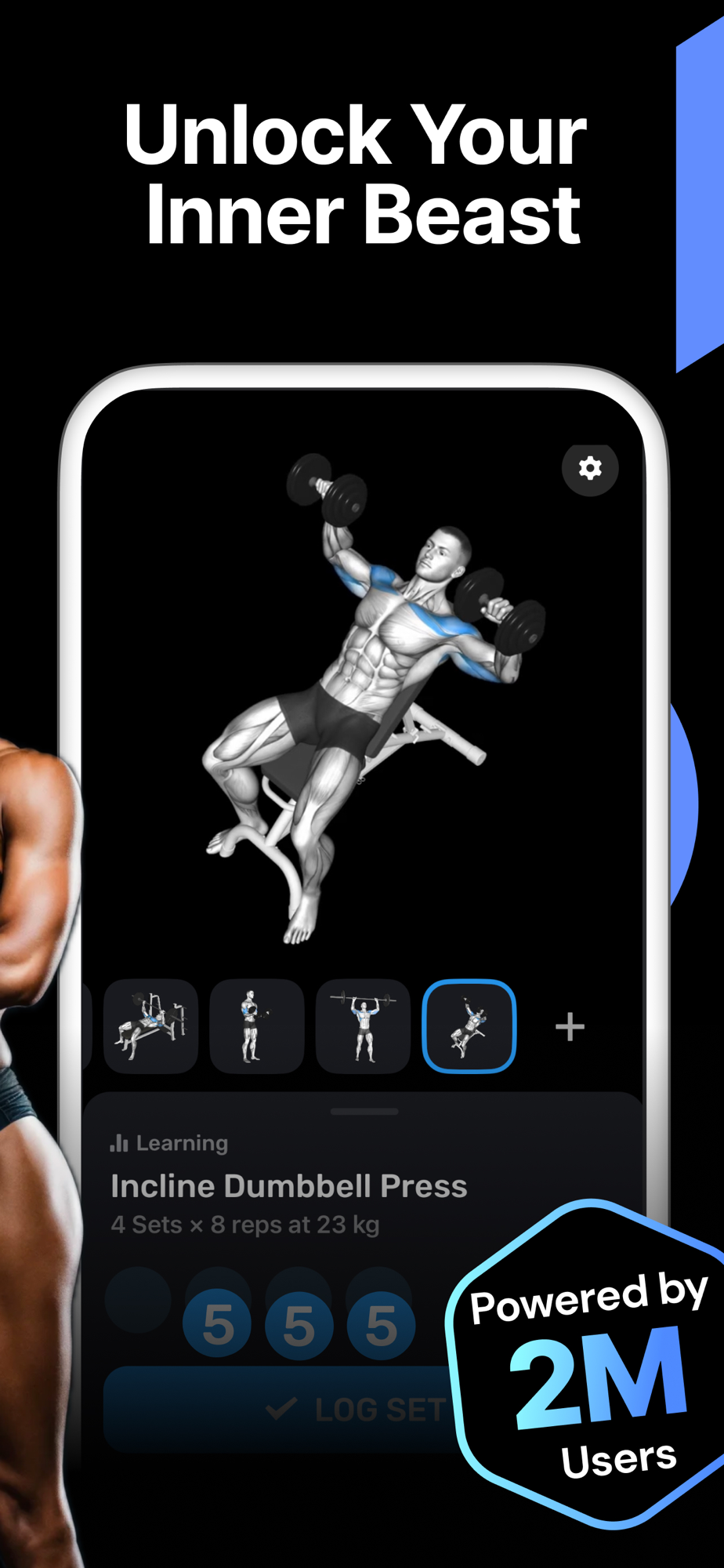 Workout at home or at the gym with FitnessAI’s advanced training algorithm to guide you through the perfect set, rep and weight combination to reach your fitness goals.