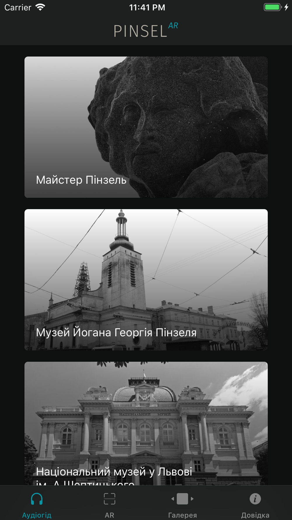 Pinsel.AR — мобільна версія сайту з додатком доповненої реальності, де представлено спадщину унікального барокового скульптора Йогана Георгія Пінзеля.