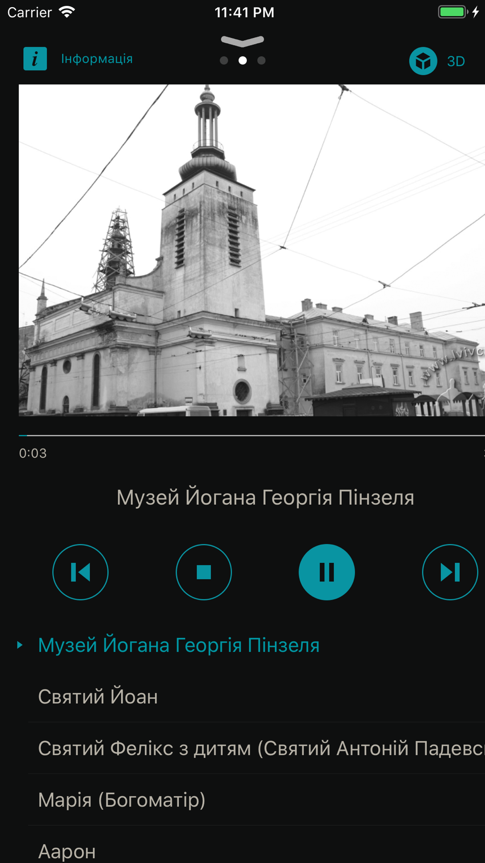 Додаток дозволяє оглянути тривимірні моделі робіт Пінзеля у різних режимах, дізнатися цікаву інформацію про окремі скульптури, довідатися детальніше про Майстра та його творчість.