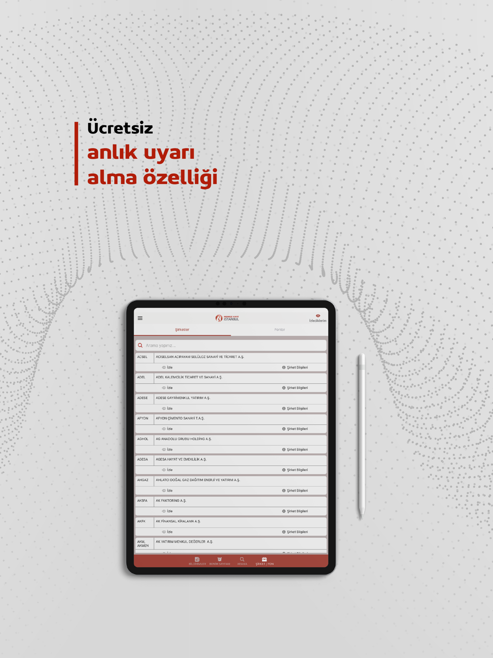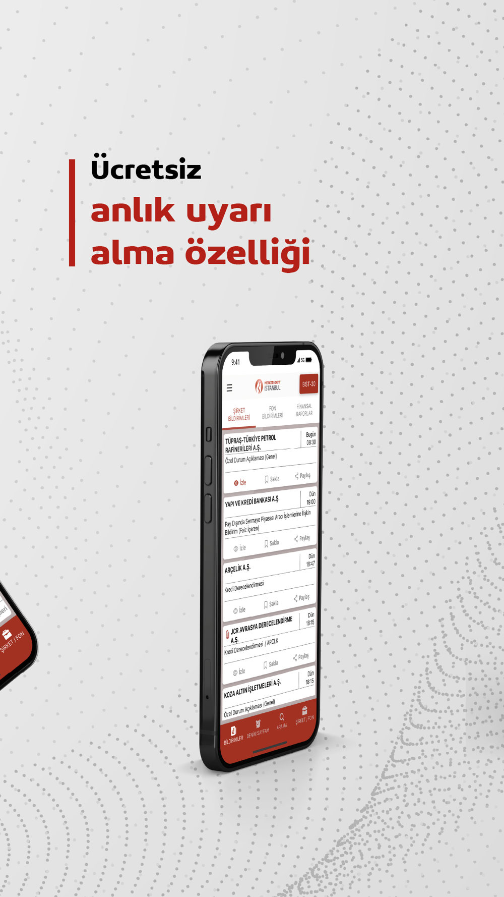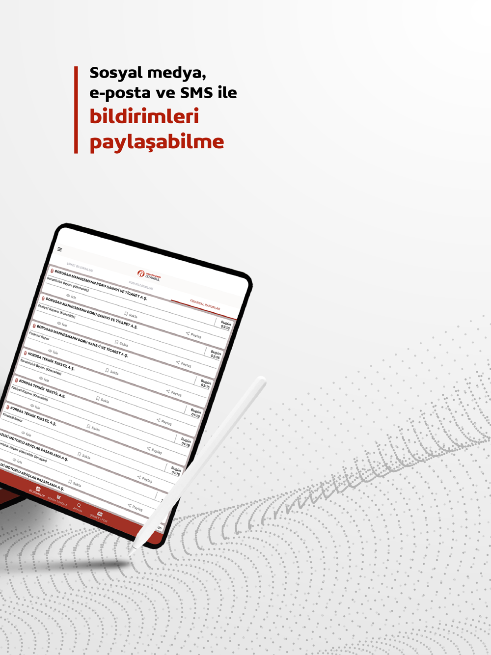 Users can create a personalized follow-up list up to 100 companies among the companies that they interested in. Users can follow the notifications of these companies separately in “Benim Sayfam” screen, and users can also enable instant notifications feature to be informed about the PDP announcements of the selected companies.