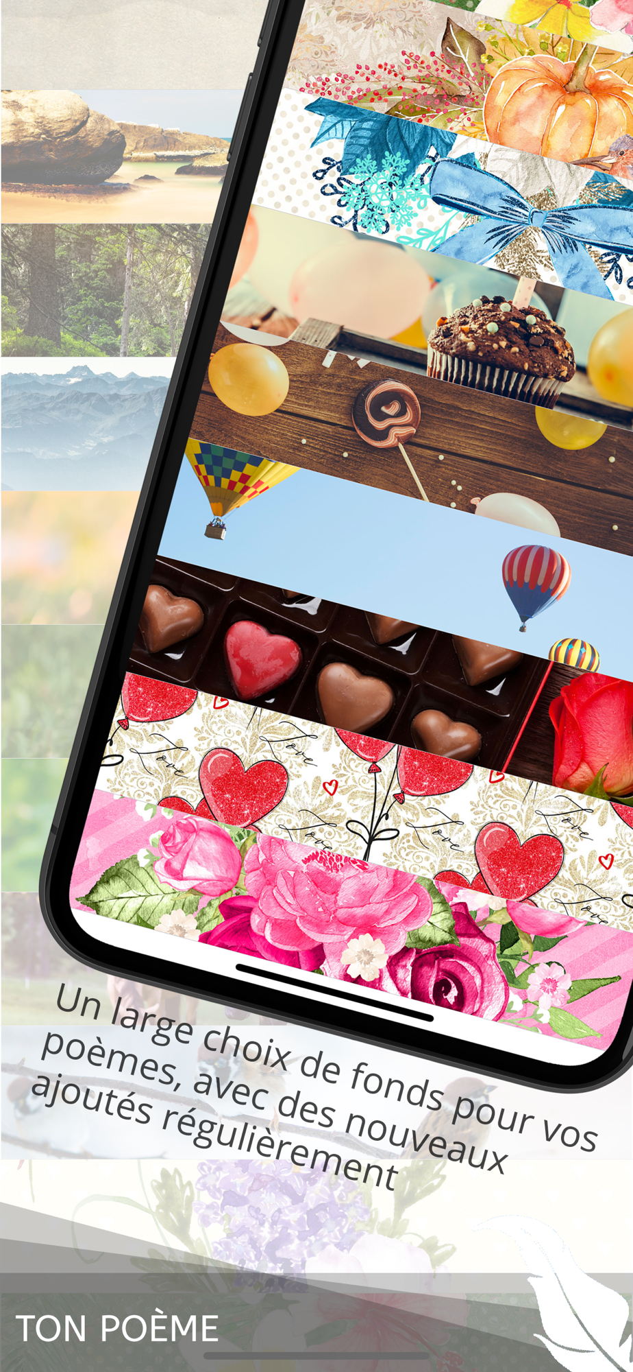 Vous pouvez changez l'image de fond sur laquelle est présenté le poème, à partir d'une liste fournie, ou parmi vos propres photos.