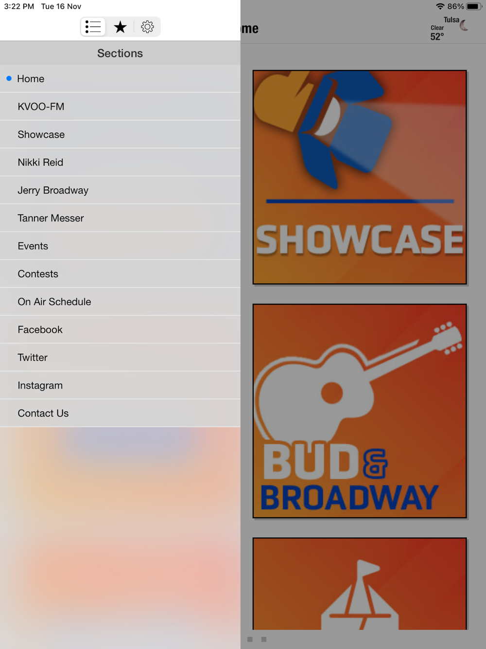 - View current playing show, latest podcast episodes, up to date station social media feeds and local news on a single screen