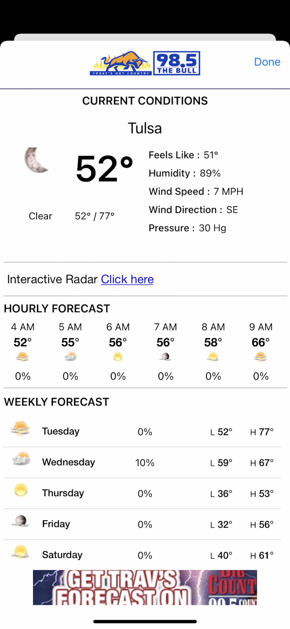 98.5 The Bull “Tulsa’s Country” is one of America's best known and original country music stations. Join us for The Amber & Brooks in the Morning, win concert tickets, and hear your favorite artists like Carrie Underwood, Luke Bryan, Kenny Chesney, Blake Shelton, and much more!