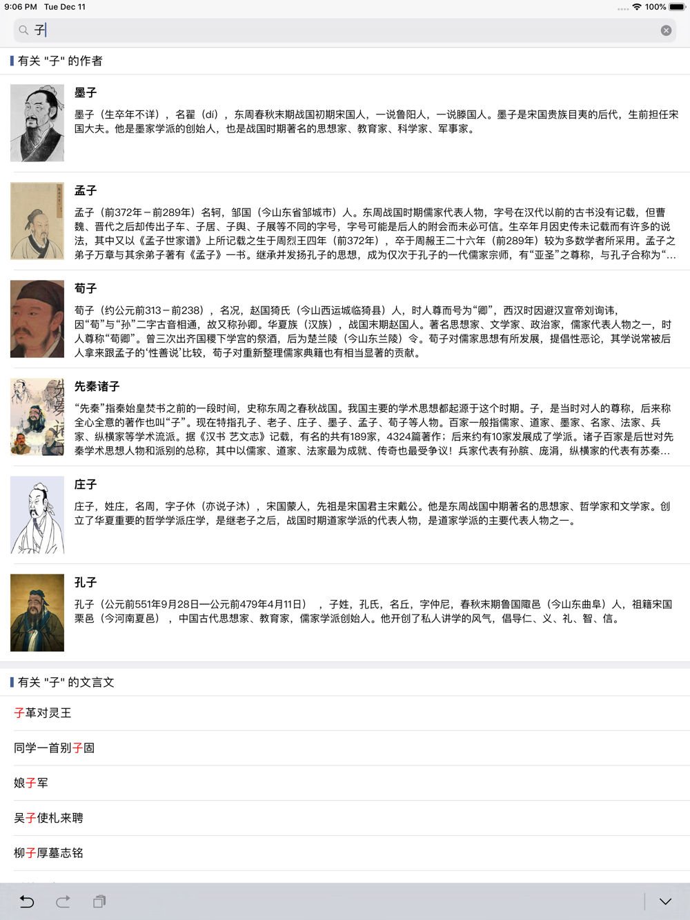 支持作者,标题、正文内容 关键字查询,同时可以收藏您喜欢的任意文言文,便于反复阅读,是您学习文言文必备的一款手册。