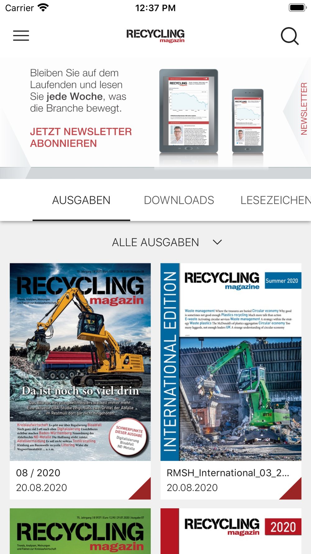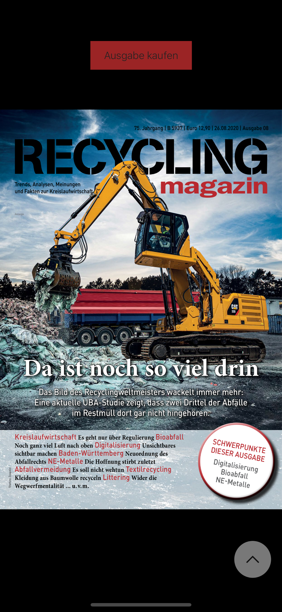 Das RECYCLING magazin berichtet unabhängig und aktuell über die wirtschaftlichen, politischen und technischen Entwicklungen in der Recycling- und Entsorgungswirtschaft. Dabei beleuchtet die Redaktion alle Stoffgruppen und bietet Orientierung, Einordnung und Erklärung. Wer sich mit Abfallentsorgung und -aufbereitung beschäftigt, findet im RECYCLING magazin einen unverzichtbaren Ratgeber für seine tägliche Arbeit. Zum Leserkreis gehören Entscheider in Entsorgungsbetrieben, Mitarbeiter in Kommunen, Ingenieure, Juristen und Umweltwissenschaftler. Jeden Monat neu erscheint das RECYCLING magazin und stellt Trends, Meinungen und Fakten der Recyclingbranche vor. Das redaktionelle Angebot erstreckt sich zudem auf 4 internationale Ausgaben und diverse Sonderhefte zu den Themen Metallrecycling, Kunststoffrecycling und Recyclingtechnik. Der jährlich erscheinende Kreislaufwirtschafts-Kompass ist ebenfalls Teil des RECYCLING magazin Portfolios. Er deckt die gesamte Wertschöpfungskette vom Design bis zur Rückführung der Sekundärrohstoffe in den Produktionsprozess ab und stellt Erfolgsgeschichten der Kreislaufwirtschaft vor.